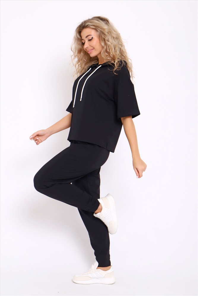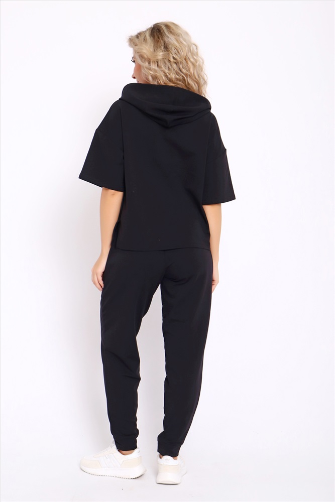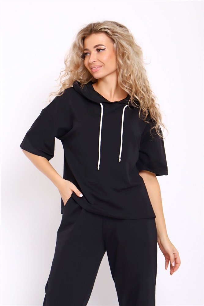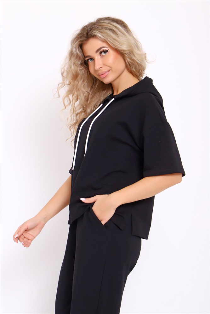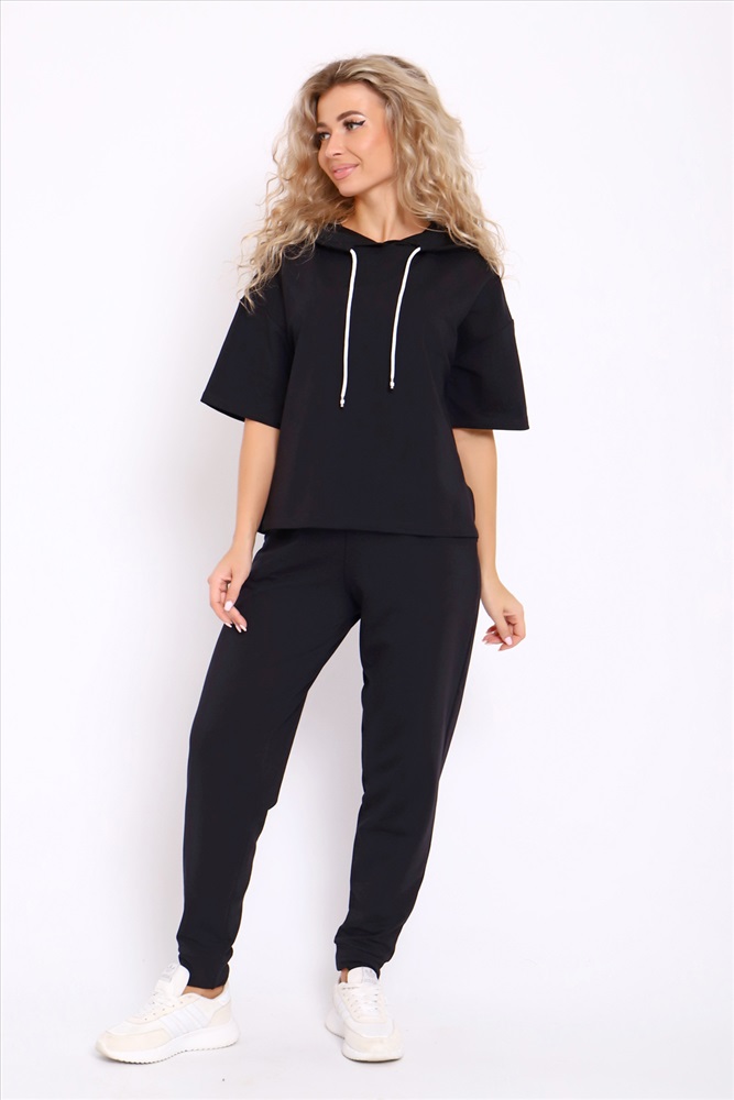 Женский костюм выполнен из футера высокого качества с хлопком и небольшим добавлением полиэстера и лайкры, что позволяет изделию не скатываться и оставлять идеальный внешний вид на долгое время. Костюм состоит из толстовки и брюк. Толстовка с капюшоном и шнурком. Линия плеча спущена, рукав укороченный, по бокам имеются небольшие разрезы. Брюки представлены с вместительными боковыми карманами. Манжеты брюк выполнены из основного материала, а пояс на специализированной поясной машине, что делает швы ровными и качественными. Свободный крой прекрасно будет смотреться на дамах с любыми формами. Костюм такого плана представлен в широкой размерной сетке, что позволяет выбрать его как девушке, так и женщине. Однотонный костюм модных расцветок будет удачным выбором для поездок в отпуск, на пикник, для школы, для активного отдыха и прогулок по городу. Будет гармонично сочетаться как с кроссовками, так и с туфлями, балетками или босоножками. Используя эту модель в качестве домашнего костюма, Вы поймёте, что это именно тот самый идеальный вариант, в котором будете себя чувствовать удобно, комфортно и современно. Костюм с брюками - это настоящая находка для тех, кто ценит свою индивидуальность!