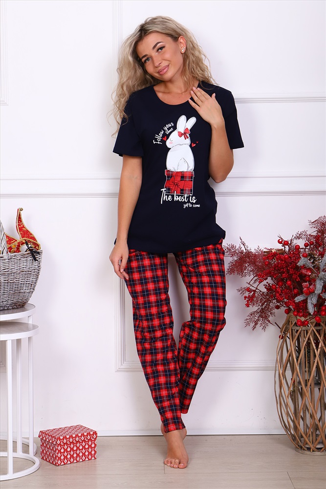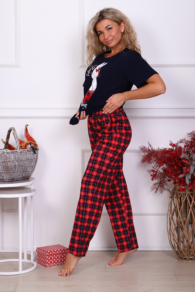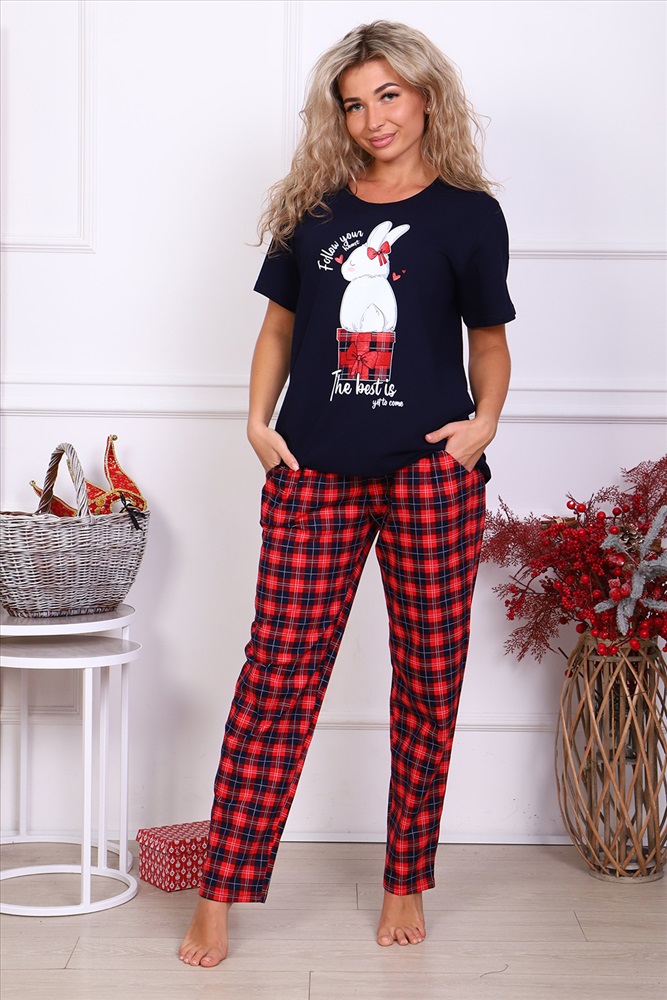 Женский трикотажный костюм с брюками из нестареющей шотландки - идеальный выбор для тех, кто следит за модой и всегда хочет выглядеть сногсшибательно! Костюм прекрасно подходит для дома, прогулок и повседневной носки. В свете последних модных тенденций, он идеально подойдет для новогодней семейной фотосессии. Брюки свободные, с двумя боковыми карманами, на широком поясе с резинкой, на полочке кофты имеется принт в тон брюкам, с очаровательным зайчишкой. Легкая и приятная к телу модель станет залогом приятного времяпровождения. Яркий и стильный костюм несомненно будет радовать хозяйку и поднимать настроение ей и окружающим!