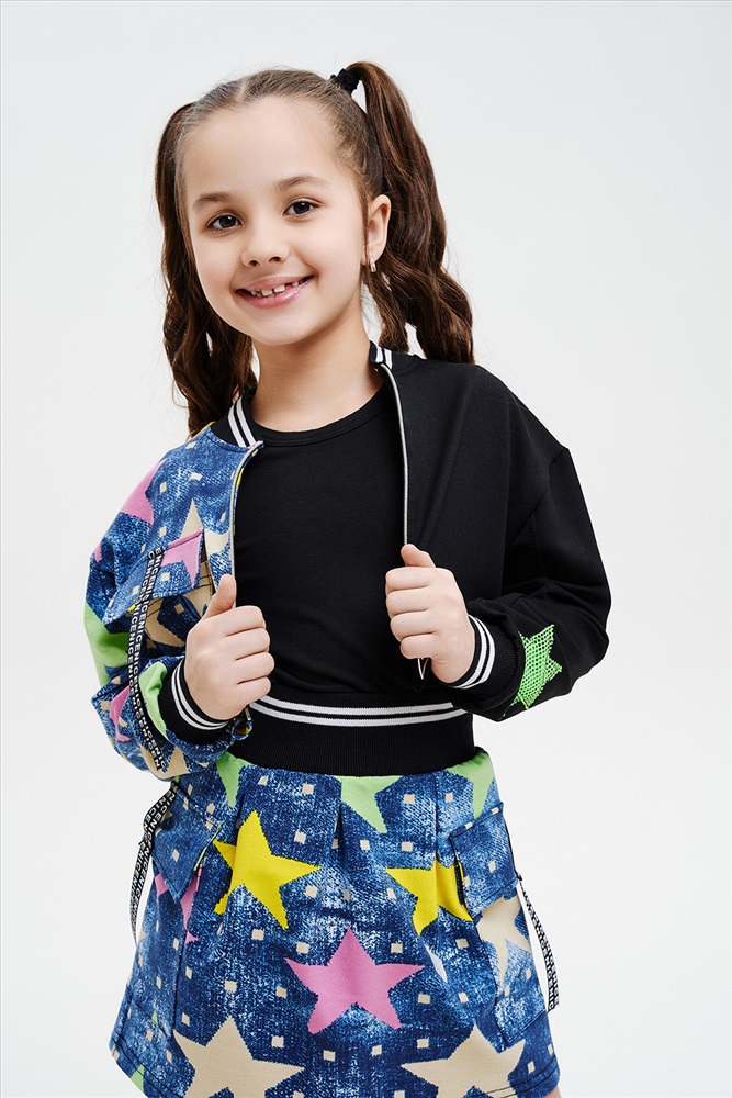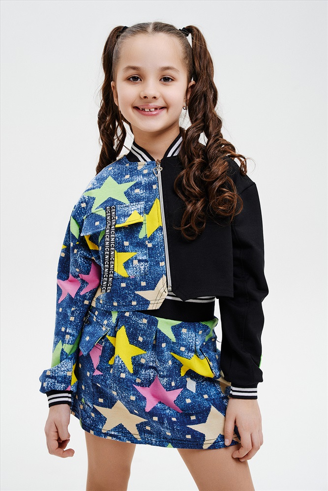Состав: хлопок 72%, ПЭ 20%, эластан 8% Модель: Костюм 67052 детский Тип товара: костюм с юбкой Материал: футер с лайкрой 2-х нитка | футер с лайкрой 2-х нитка Бренд: Натали Суслова Карман: накладные Отделка: с карманами | с манжетами | с тесьмой | с вышивкой Рейтинг: Рейтинг 4 и выше Рисунок: геометрия | колорблок Рукав: длинный рукав Сезонность: лето | осень | весна | зима Силуэт: прямой Скидка: любая | от 10% и больше | от 30% и больше | от 50% и больше Стиль: повседневный Воротник: воротник стойка Застежка: молния Костюм детский для девочек, состоит из укороченного бомбера с застежкой на молнию и накладным нагрудным кармашком с клапаном. Горловина и низ рукавов обработаны эластичной рибаной. Рукав бомбера оформлен ярким декором в форме звезды. Юбка свободного силуэта с широкой эластичной резинкой на поясе, с накладными боковыми карманами оформленными декоративными яркими звездами. Таблица размеров и весажакет