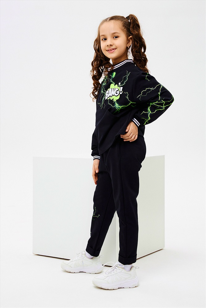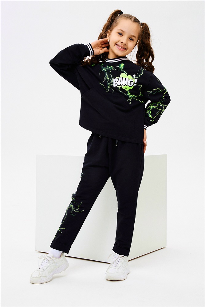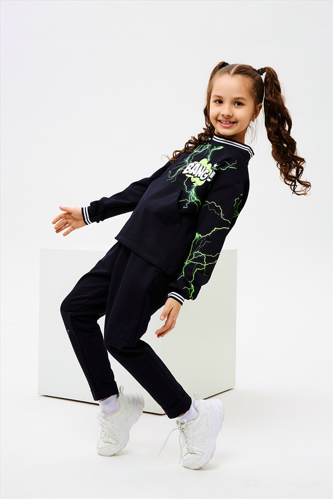 Состав: хлопок 72%, ПЭ 20%, эластан 8% Модель: Костюм 67066 детский Тип товара: костюм с брюками Материал: футер с лайкрой 2-х нитка | футер с лайкрой 2-х нитка Бренд: Натали Суслова Карман: боковые | кенгуру Особенности: на резинке Отделка: с карманами | с манжетами | с печатью | со шнурком Рейтинг: Рейтинг 4 и выше Рисунок: надпись Рукав: длинный рукав Сезонность: лето | осень | весна | зима Силуэт: свободный Скидка: любая | от 10% и больше | от 30% и больше Стиль: молодежный | повседневный | спортивный Воротник: без воротника Застежка: без застежки Стильный детский костюм свободного силуэта, состоит из толстовки и брюк с ярким принтом. Таблица размеров и весатолстовка
