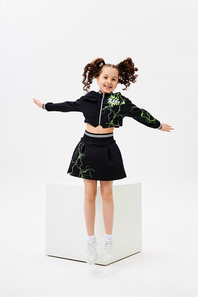Состав: хлопок 72%, ПЭ 20%, эластан 8% Модель: Костюм 67069 детский Тип товара: костюм с юбкой Материал: футер с лайкрой 2-х нитка | футер с лайкрой 2-х нитка Бренд: Натали Суслова Карман: боковые | накладные Особенности: на резинке Отделка: с карманами | с манжетами | с печатью Рисунок: надпись Рукав: длинный рукав Сезонность: лето | осень | весна | зима Силуэт: прямой Скидка: любая | от 10% и больше | от 30% и больше Стиль: молодежный | повседневный Воротник: воротник стойка Застежка: молния Стильный детский костюм состоит из бомбера и юбки с ярким принтом. Таблица размеров и весатолстовка
