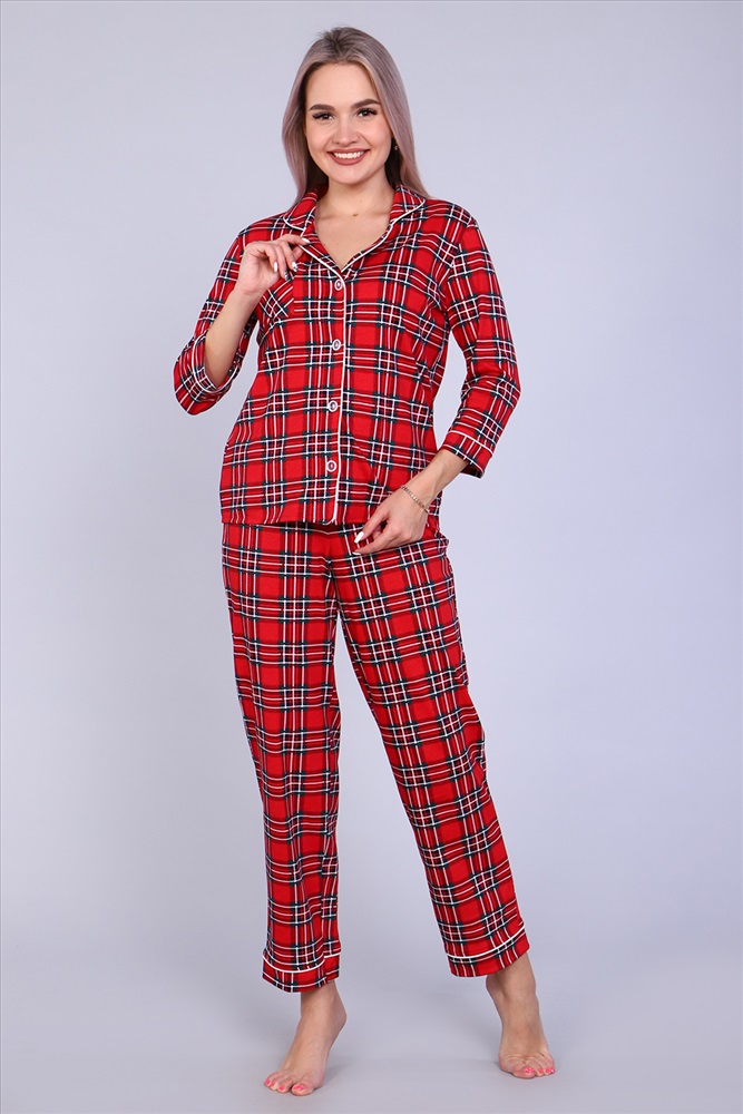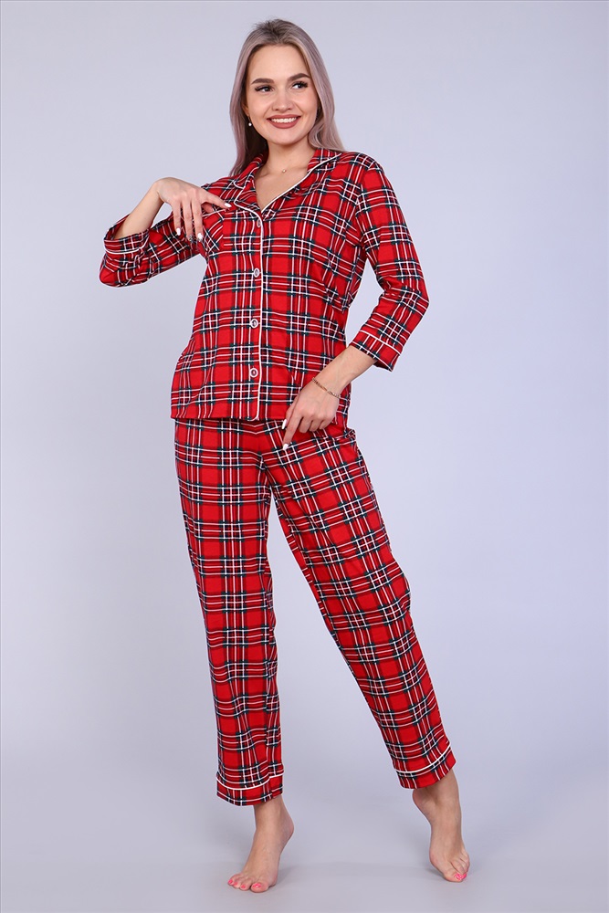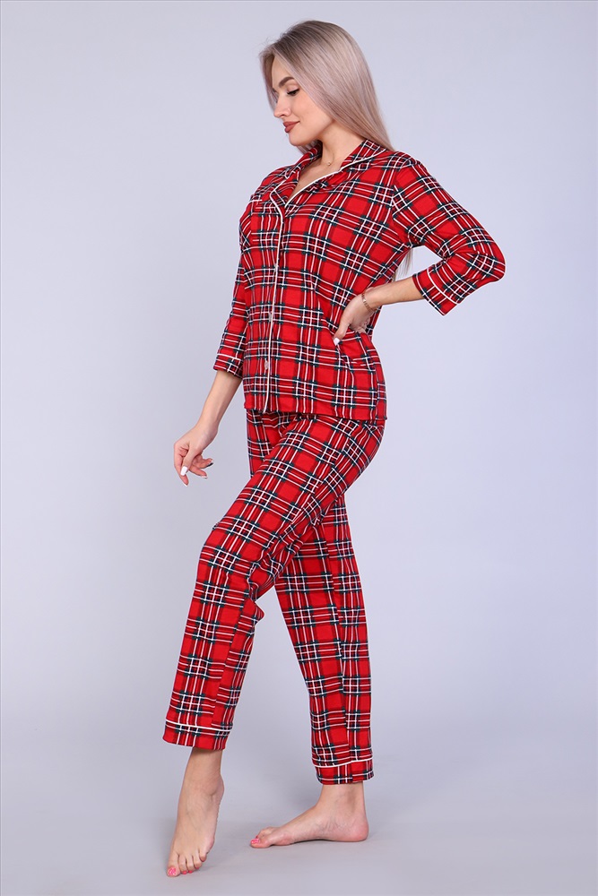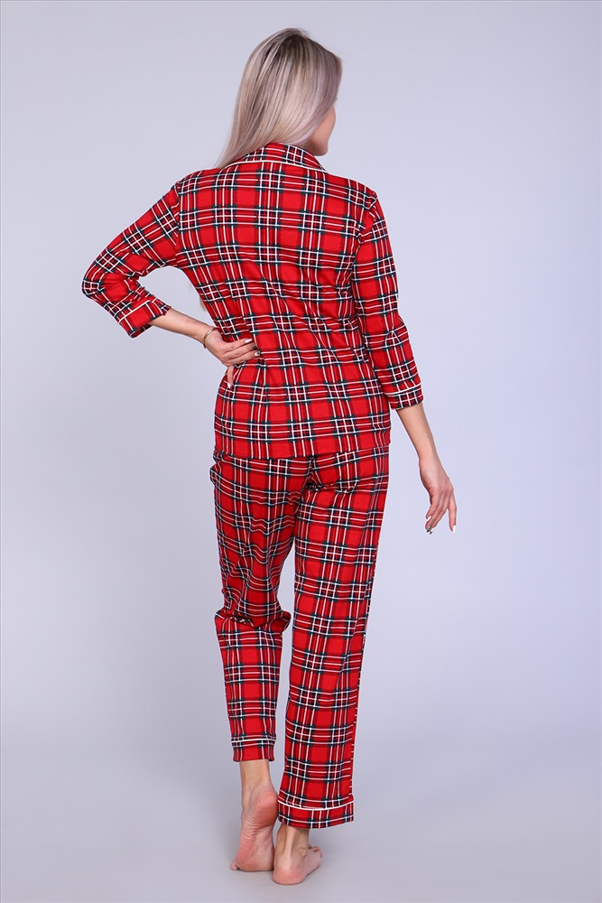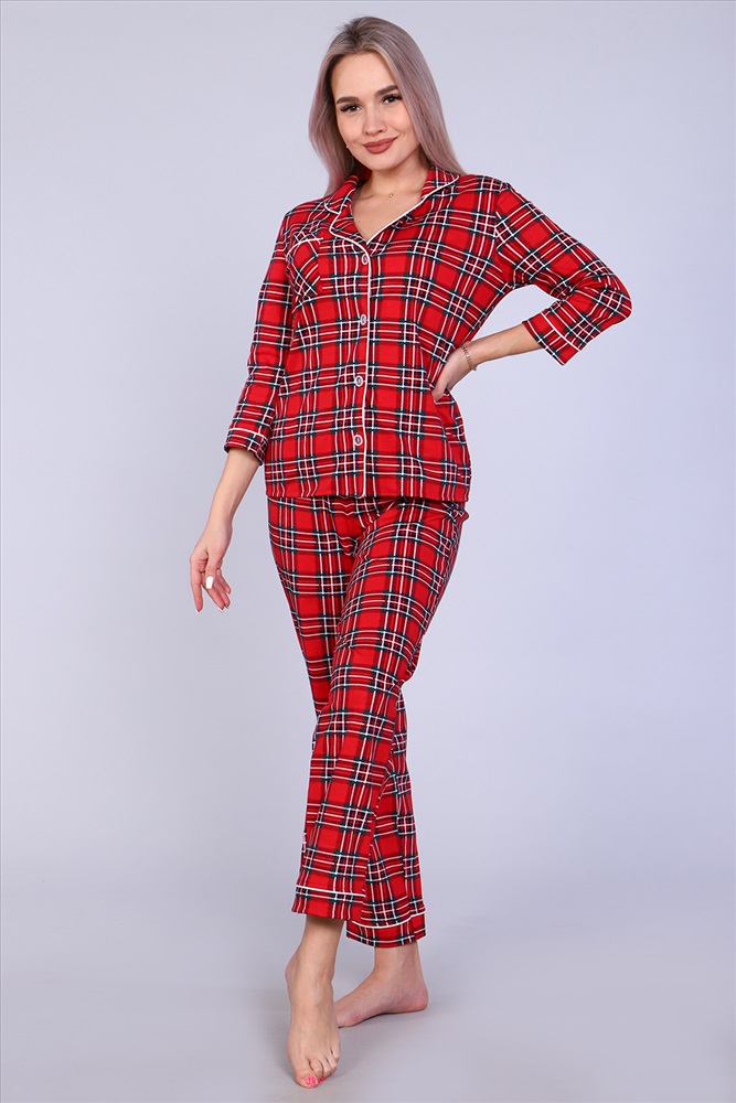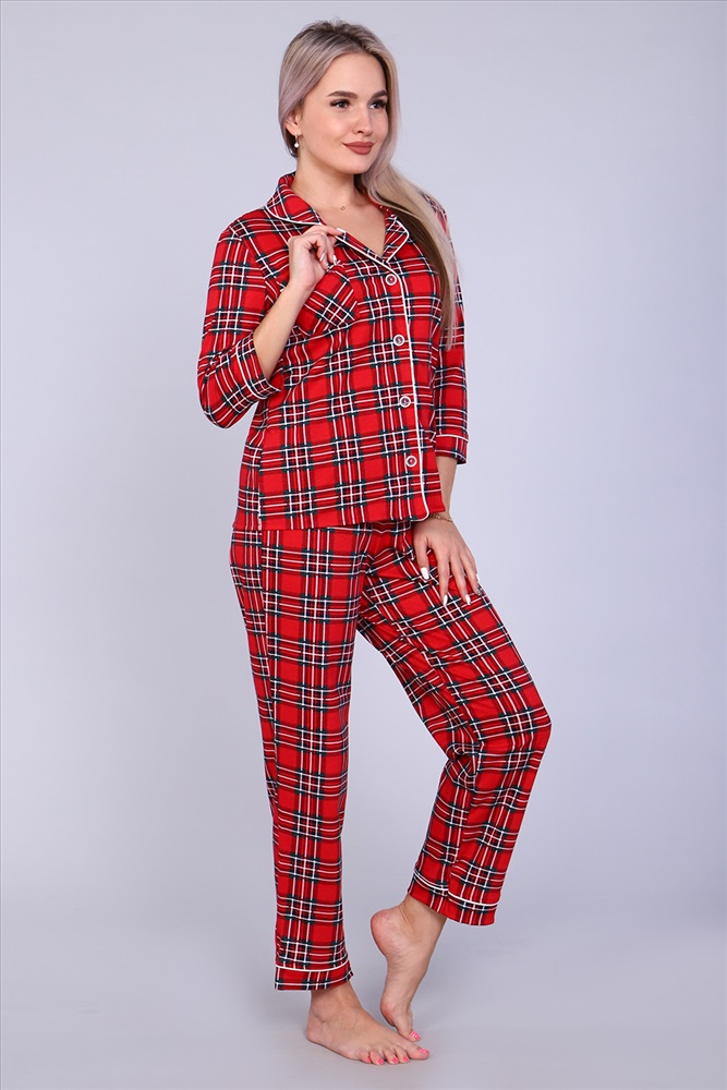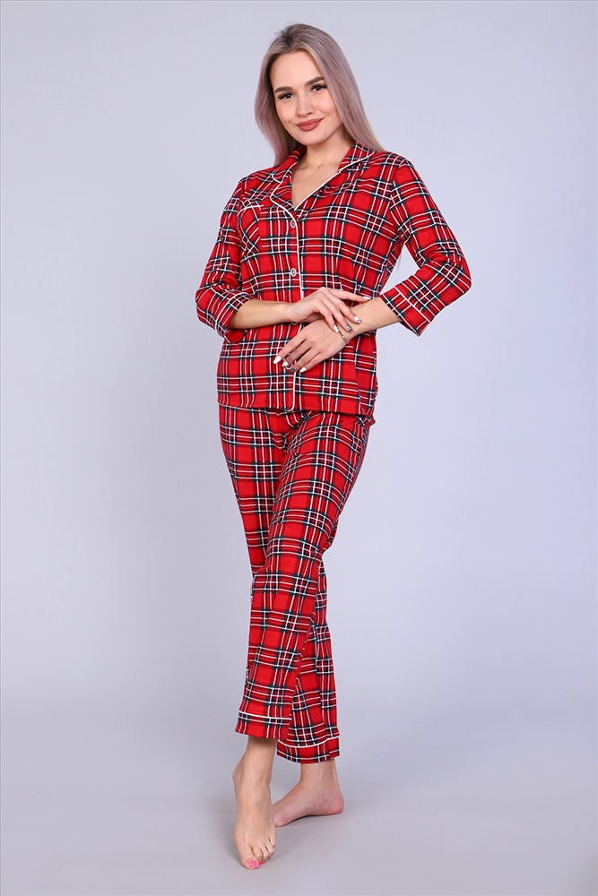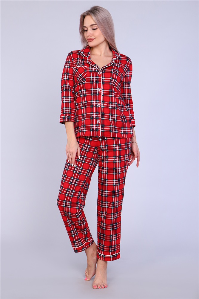 Уютная стильная пижама женская состоит из брюк и рубашки. Рубашка с 3/4 рукав, полуприлегающего силуэта, на пуговицах, с воротником в английском стиле обработан атласным кантом. Классическая расцветка, натуральная ткань, полуприлегающий силуэт. Комплект женский может использоваться и как домашняя пижама. Он также станет отличным приобретением для беременных и кормящих женщин, в подарок, маме, сестре, бабушке, подруге, женщинам больших размеров.