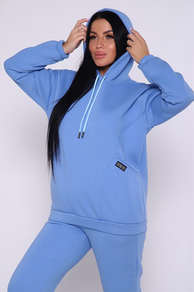 Теплый костюм выполнен из футера 3-х нитки с начесом с содержанием хлопка премиум качества. Костюм состоит из объёмной толстовки в стиле оверсайз с накладными карманами и джогеров. Низ брюк и рукавов на толстовке обработан резинкой. Пояс брюк на резинке, для удобства по бокам расположены прорезные карманы. Перед использованием желательно постирать костюм при 30 градусах, тогда излишний ворс примнется.