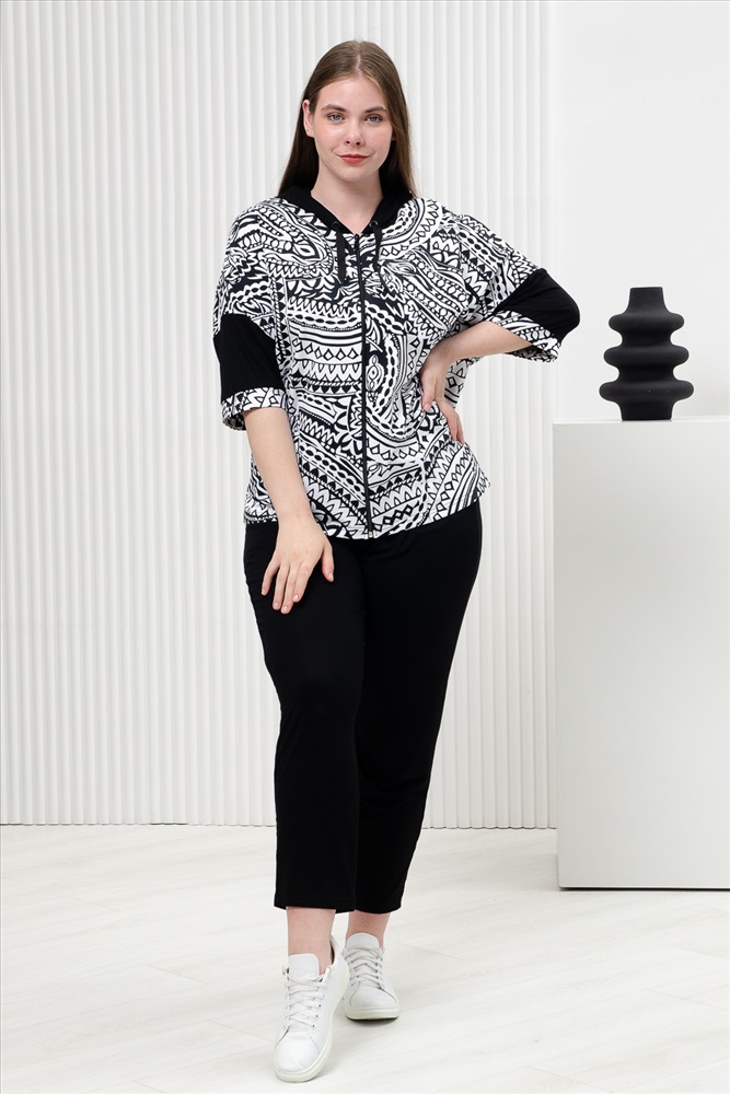 Состав: хлопок 95%, лайкра 5% и вискоза 92%, лайкра 8% Модель: Костюм 8369 Тип товара: костюм с брюками Материал: кулирка с лайкрой | вискоза | кулирка с лайкрой | вискоза Бренд: Натали Суслова Карман: боковые | накладные Особенности: на резинке Отделка: с карманами | с манжетами | со шнурком Посадка: средняя посадка Рейтинг: Рейтинг 4 и выше Рисунок: узоры Рукав: рукав 3/4 Сезонность: лето | осень | весна | зима Силуэт: прямой Стиль: повседневный Воротник: с капюшоном Застежка: молния Костюм состоит из толстовки и брюк. Толстовка прямая, свободная, с капюшоном, на молнии. Рукав короткий, на манжете. На полочке расположены фигурные накладные карманы. Брюки на поясе, с боковыми карманами. В верхней части передних половинок по шву притачивания пояса расположены складки. Таблица размеров и весафутболка