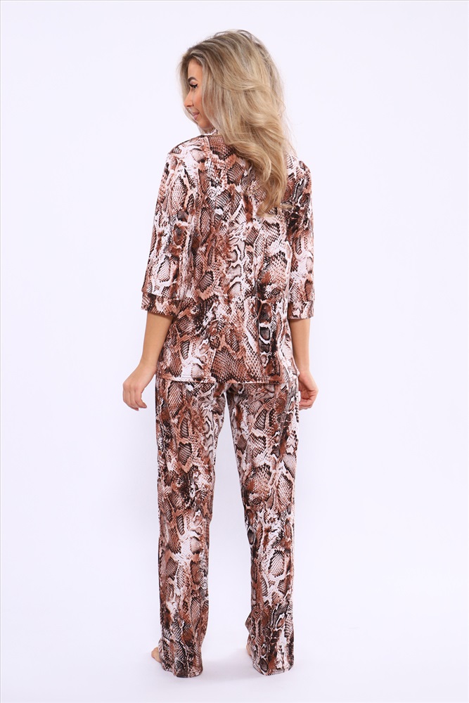 Состав: 100% хлопок Модель: Костюм 85033 Тип товара: костюм с брюками Материал: кулирка | кулирка Бренд: Натали Суслова Карман: накладные Назначение: для дома Особенности: на резинке Отделка: с карманами Посадка: средняя посадка Рисунок: анималистичный Рукав: рукав 3/4 Сезонность: лето | осень | весна | зима Силуэт: прямой | свободный Стиль: домашний Воротник: воротник с лацканами Застежка: пуговицы Удобный домашний костюм. Костюм состоит из кофты и брюк. Кофта на пуговках, воротник отложной. Рукава 3/4 с притачными манжетами. На полочке накладные карманы с обтачкой. Брюки с карманами. Пояс брюк пришивной, обработан на поясной машине. Отличный костюм для домашнего отдыха! Таблица размеров и весакофта
