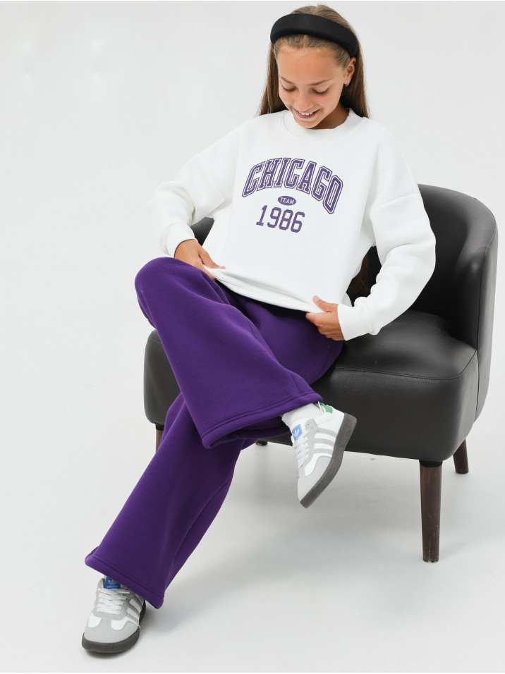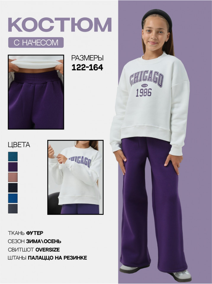 Теплый трикотажный костюм из футера с начесом для девочек. Спортивный костюм изготовлен из мягкого и приятного на ощупь материала на хлопковой основе производства Турция, обладает износостойкостью, не растягивается и не теряет своей формы. Начес может «сыпаться» или оставаться на одежде первые дни – это нормальное явление обусловленное технологией производства ткани, через пару стирок оно пройдет, что никак не скажется на теплоте и плотности костюма. Состоит из свитшота с принтом и штанов палаццо. Удобное лекало, не сковывающее движений, яркий принт, современный дизайн – подчеркнет индивидуальность и подарит комфорт. Кофта с модным леопардовым принтом закрывает поясницу и имеет декоративный разрез сзади. На брюках так же расположена стилизованная надпись, пояс на мягкой эластичной резинке. Отлично подойдет как детям, так и девочкам подросткам. Наш трендовый костюм - это отличный выбор для девочек, которые хотят быть яркими, модными, следят за модой и ведут активный образ жизни. Детский комплект двойка в стиле кэжел подходит для повседневного использования, прогулок, путешествий, походов в детский сад или школу, а также для особых случаев, таких как День Рождения, фотосессия, в гости, на праздник или в подарок. Флисовый детский костюм (костюм на флисе) в базовых расцветках обязательно полюбится вашим прекрасным девочкам и вам.