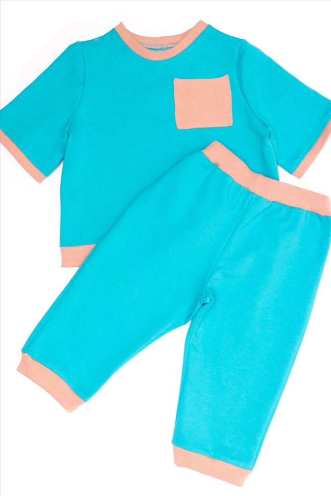Уютный костюм для самых маленьких и немного постарше детишек. Футболка и брюки из приятного на ощупь футера двунитки. Удобные не стесняющие штанишки на широком поясе с манжетами по низу. Незаменим для повседневных прогулок, в детский садик или в качестве домашнего костюма. Легко стирается, не закатывается.