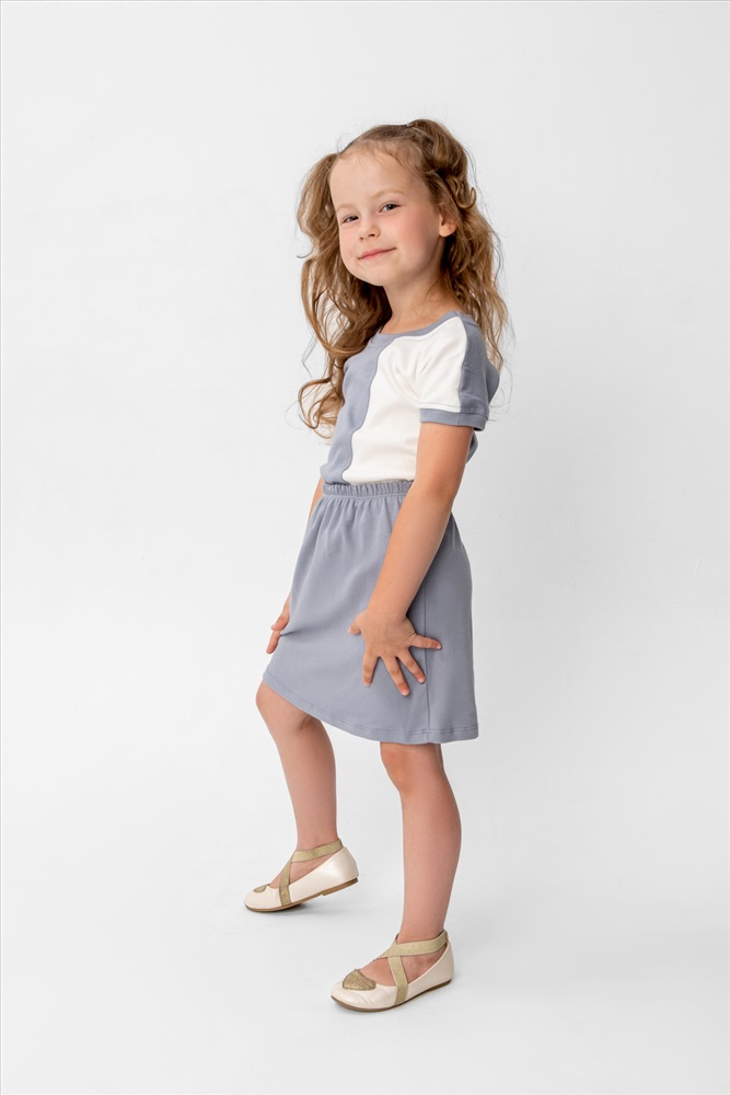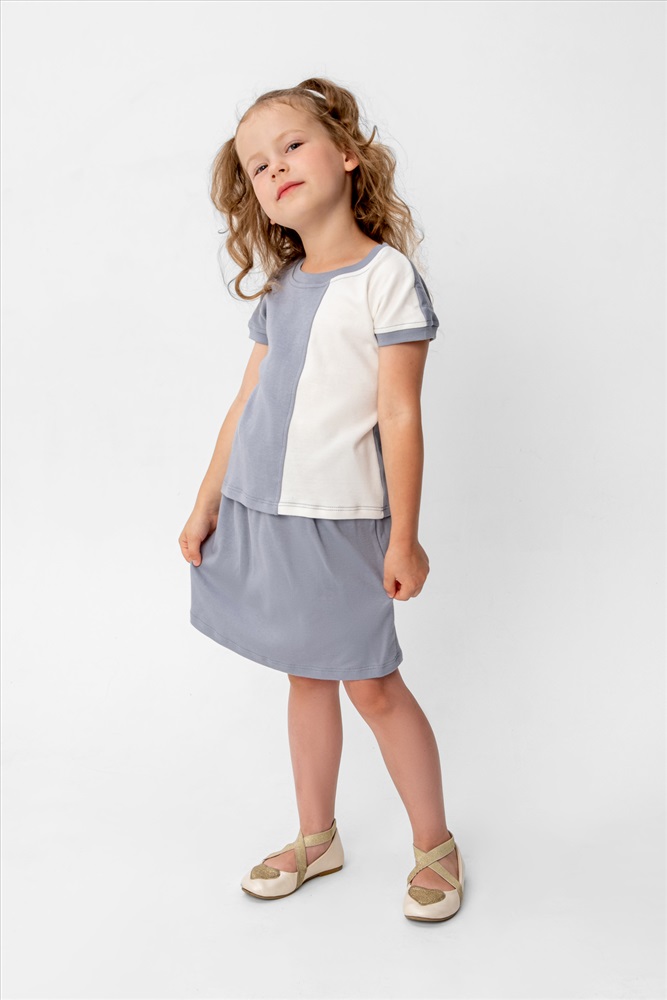 Легкий костюм для девочки, футболка и юбка. Выполнены из мягкой, приятной к телу ткани, интерлок 100% хлопок. Подходит для прогулок, для садика, для повседневного наряда. Легко стирается, просто утюжится.