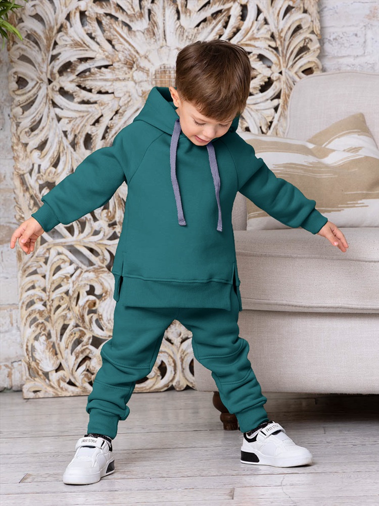 Костюм Нейтон для более старших мальчиков, предназначен для носки в прохладных помещениях и прогулки на улице, выполнен из плотного футера с начёсом. Толстовка на поясе, с капюшоном на шнурке, рукава-реглан на манжетах. Разрезы в боковых швах по нижней части толстовки придают модели особую оригинальность. Штанишки на манжетах, пояс на резинке, декоративная отстрочка в области колен. В таком костюме ребёнок будет чувствовать себя комфортно, уютно и всегда будет в центре внимания!