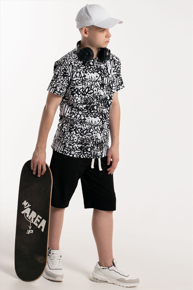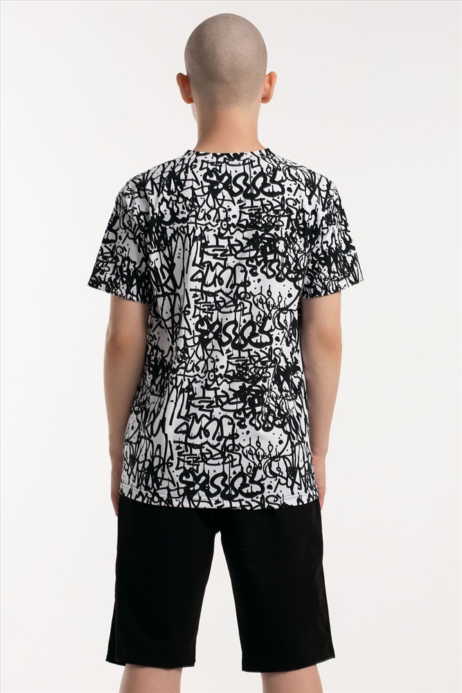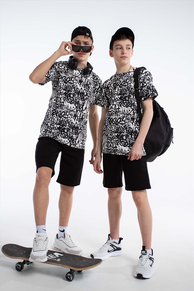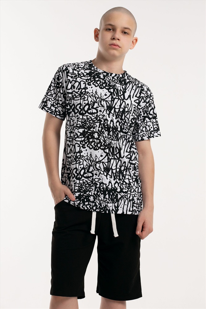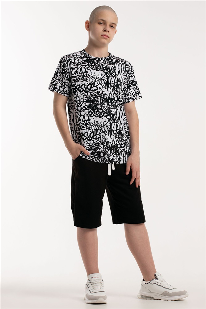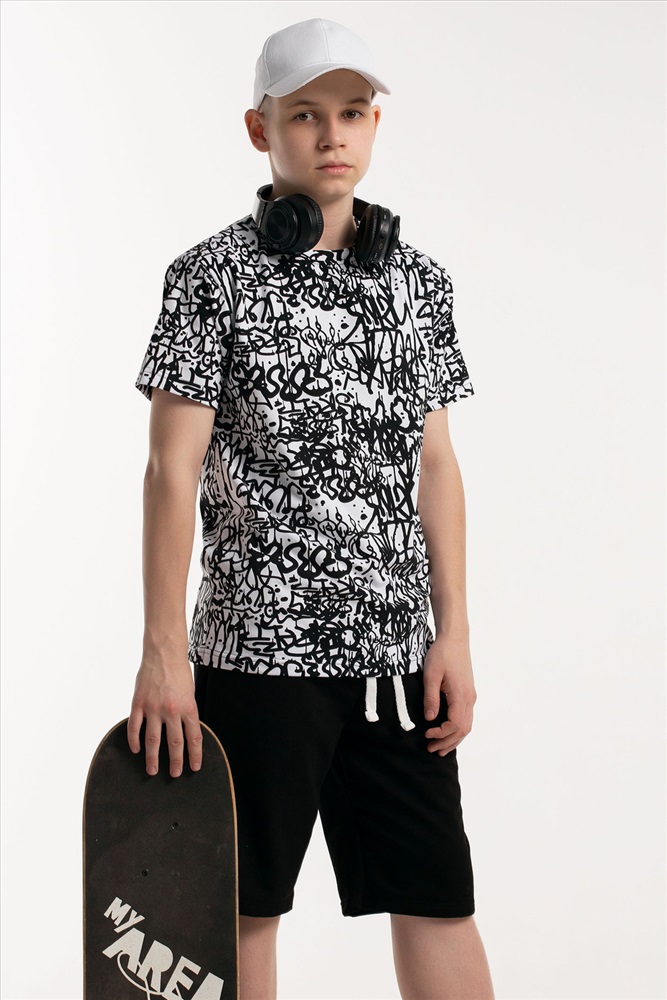 Состав: верх- 92% Хлопок; 8% Лайкра. Низ- 75% Хлопок 25% Лайкра Модель: Костюм Грани 3 Тип товара: костюм с шортами Материал: кулирка с лайкрой | футер 2-х нитка | футер 2-х нитка | кулирка с лайкрой Бренд: ТМ Крутто Карман: боковые Отделка: с карманами | со шнурком Рисунок: абстракция Рукав: короткий рукав Сезонность: лето Силуэт: прямой Стиль: повседневный | спортивный Воротник: без воротника Застежка: без застежки Костюм для подростков состоит из двух изделий - футболки и шорт. Футболка выполнена из ткани с абстрактным принтом. Футболка прямого свободного кроя, круглый вырез горловины, втачной рукав. Шорты выполнены из футера 2-х нитки, прямого кроя, с удобной посадкой. С боковыми карманами и шнурком. Таблица размеров и весафутболка