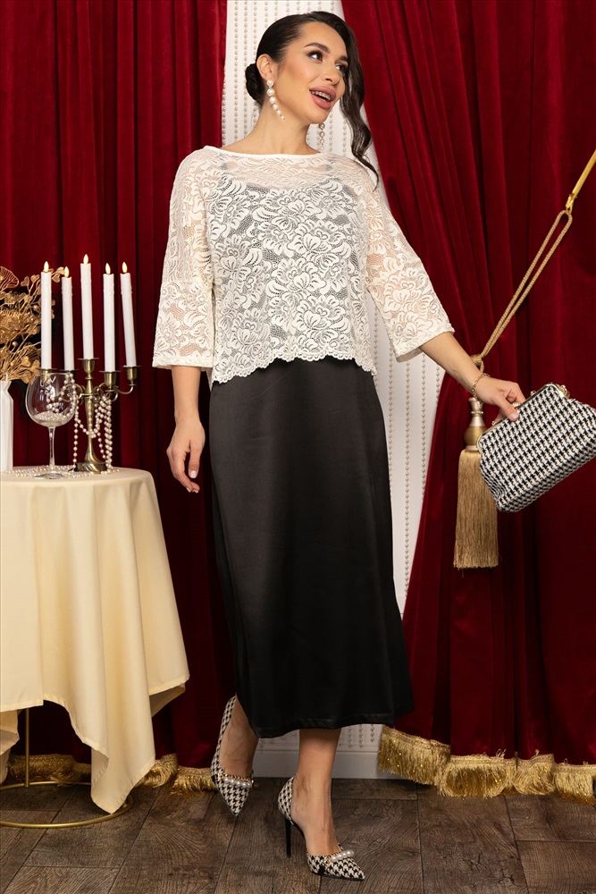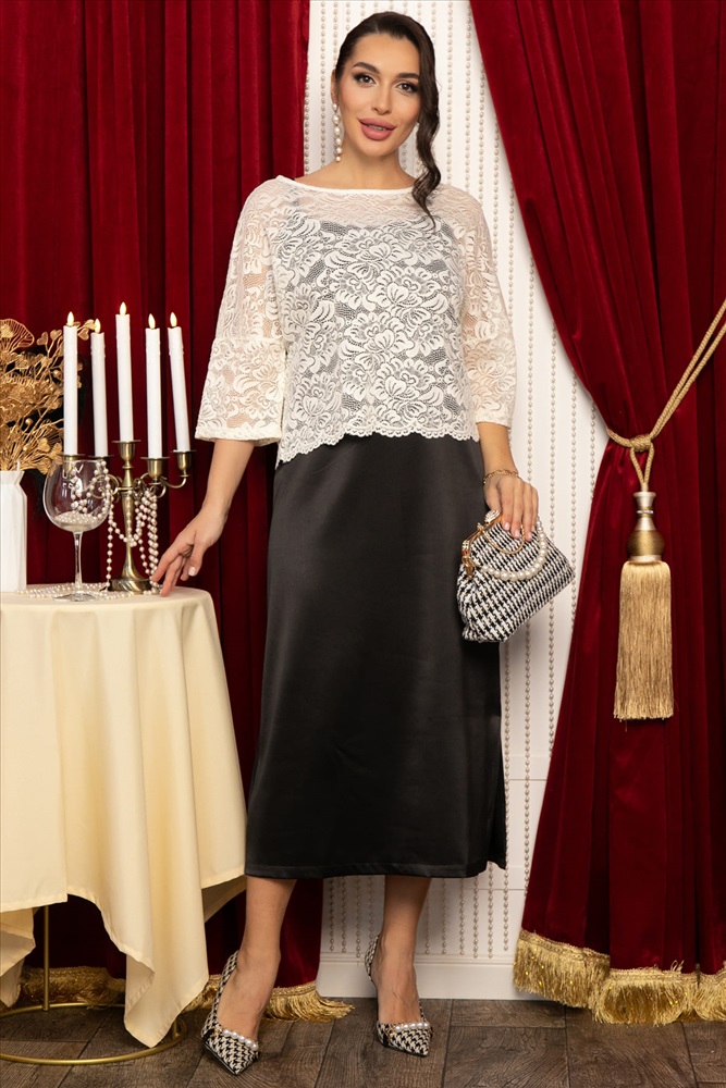 Цвет: черный Состав : 98% полиэстер, 2% эластан Материал : платье - атлас, накидка - кружево Цвет : черный Принт : отсутствует Силуэт : свободный Карманы : отсутствуют Резинка в поясе : нет Вид застежки : без застёжки Декоративные элементы : отсутствуют Элегантный костюм, состоящий из платья-комбинации и накидки, воплощает в себе женственность и утончённый стиль! Платье из роскошного чёрного атласа мягко облегает фигуру, подчёркивая вашу грацию. Нежная кружевная накидка молочного оттенка добавляет образу загадочности и очарования. Её можно носить как самостоятельный элемент или вместе с платьем, создавая разнообразные и стильные комбинации для различных случаев. Этот комплект подарит вам уверенность и комфорт на встрече с подругами, в ресторане или на важном мероприятии. В таком наряде вы непременно окажетесь в центре внимания! Этот изысканный и удобный ансамбль позволит вам создавать самые эффектные образы. Внимание! Рекомендуем ориентироваться на размерную сетку и выбирать свой привычный размер, согласно размерной таблице. *Допуск отклонения длины при массовом производстве 1-3 см является нормой. Уход за изделием: Ручная стирка или стирка в машине при температуре до 30 °C, деликатный режим. Не использовать отбеливатели. Разрешена глажка при температуре до 110 °C. При глажке использовать специальную насадку на подошве утюга, гладить с паром. Не замачивать и не выжимать. Стирать изделие наизнанку, отдельно от других вещей.