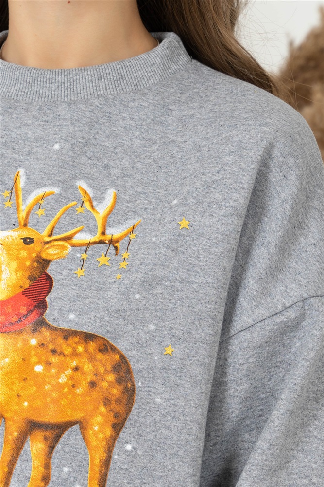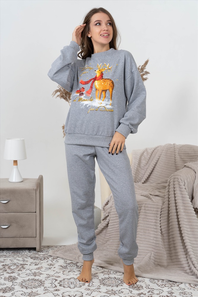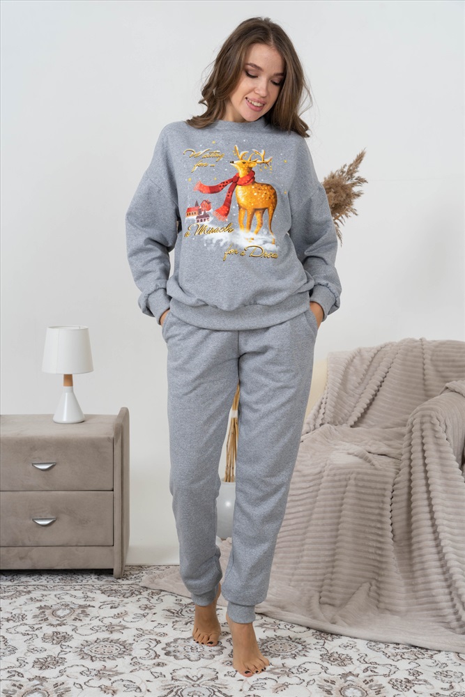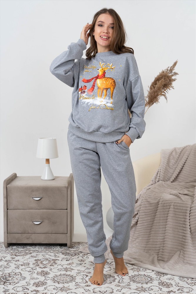 Олени - неотъемлемый атрибут Рождества. Традиция использовать в новогоднем убранстве рождественских оленей завоевала большую популярность во всём мире. В этом уютном удобном костюме из футера 2х нитки с начёсом комфортно находиться в домашней обстановке. В нём можно встретить праздник и использовать в качестве подарка. Костюм состоит из свитшота свободного кроя и брючек с карманами в боковых швах. Все манжеты на костюме выполнены из плотной резинки - кашкорсе. Пояс обработан плотной резинкой 3см. После стирки может быть небольшая усадка, поэтому имеется напуск. Длина рукава в измерениях указана от основания шеи.