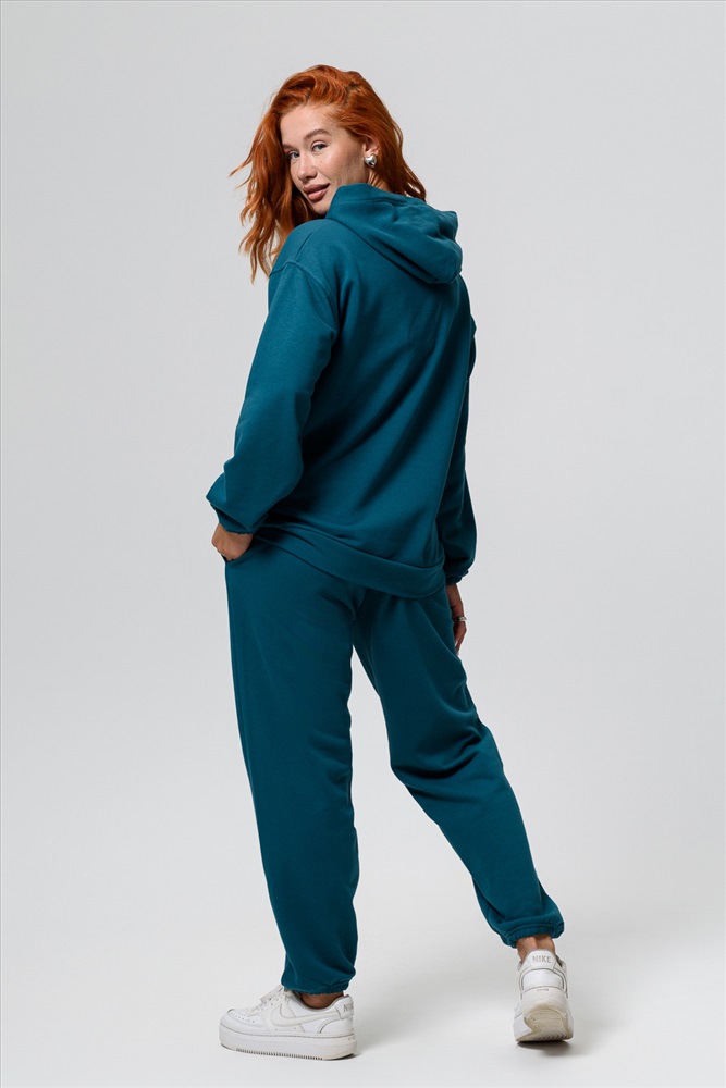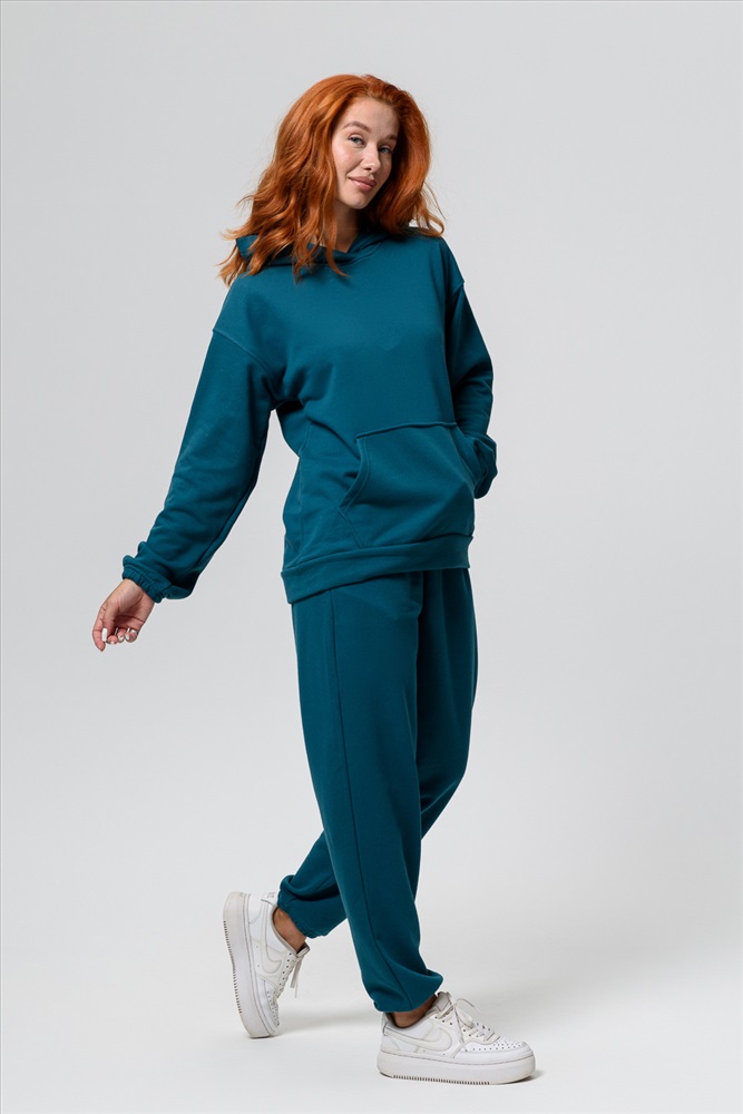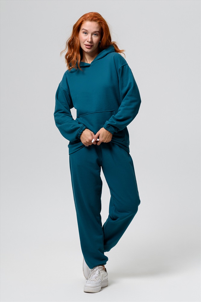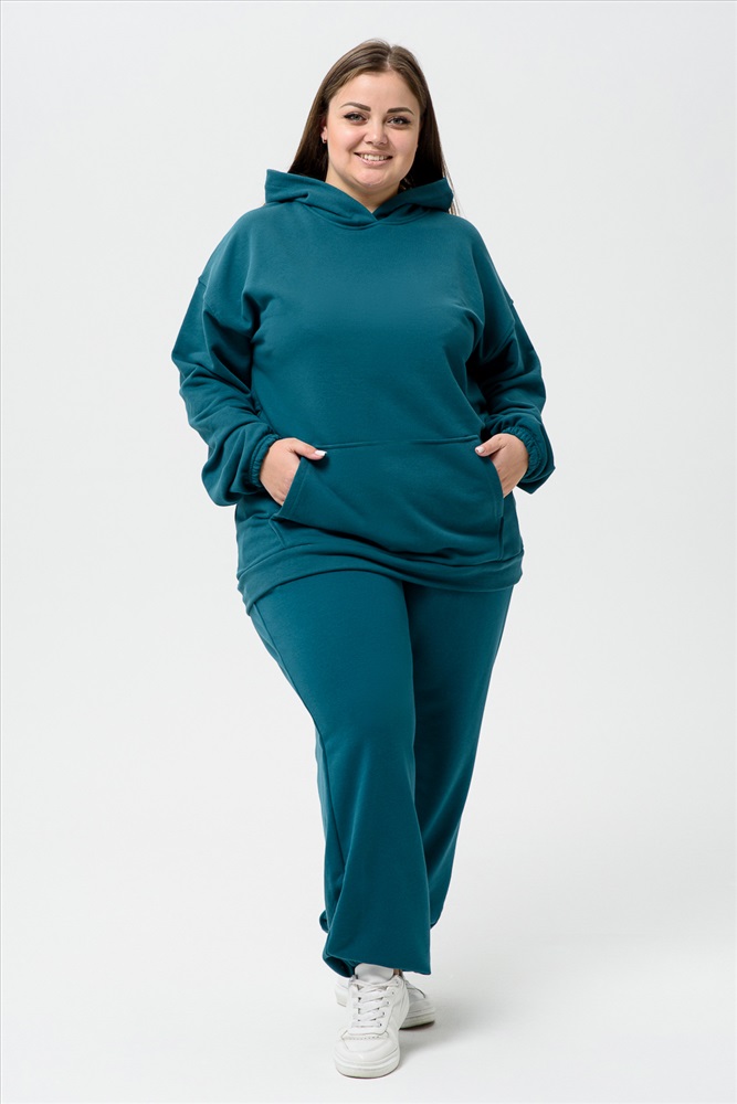Состав: 80 % ХБ, 20% ПЭ Модель: Костюм спортивный женскиий 14424 оверсайз Тип товара: костюм с брюками Материал: футер 3-х нитка | футер 3-х нитка Бренд: Натали Суслова Карман: боковые | кенгуру Назначение: для дачи Особенности: на резинке Отделка: с карманами | с манжетами Посадка: высокая посадка Рисунок: однотонные Рукав: длинный рукав Сезонность: лето | осень | весна | зима Силуэт: свободный Стиль: повседневный Воротник: с капюшоном Застежка: без застежки Спортивный костюм идеальный выбор для любителей активного образа жизни. Комплект состоит из худи с капюшоном и карманом кенгуру и штанов джоггеров, что делает его многофункциональным и практичным для разных видов занятий, включая фитнес, бег и йогу. Этот комплект представляет собой комфортную и стильную одежду, подходящую для зимних и осенних тренировок, а также для повседневного использования. Используемая футер трехнитка без начеса обеспечивает тепло в холодную погоду, а мягкая и приятная на ощупь ткань создает ощущение комфорта. Стильный дизайн и актуальные цвета делают его популярным среди девушек и женщин. Практичность и функциональность порадуют даже самого взыскательного покупателя. Костюм изготовлен из качественных материалов и отвечает всем требованиям для занятий спортом в зале или на улице. Таблица размеров и весатолстовка