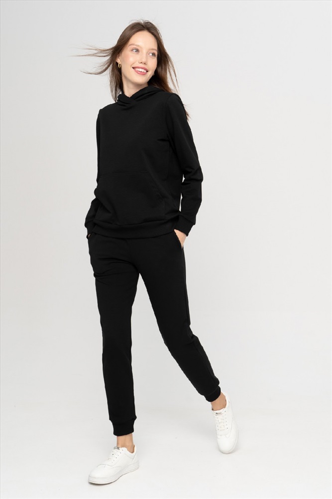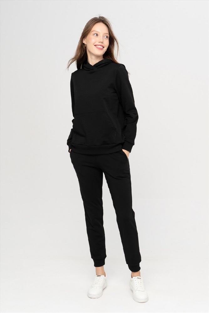 Производитель: POL`MOTIVE Код товара: 23-350L3-37 Состав: х/б - 65 %; л. - 10 %; ПА - 25 % Вид полотна: Футер 2-х нитка цвет: черный Коллекция: BASE Мягкий уютный костюм из хлопкового футера– это must have для каждой девушки. Худи с втачным рукавом, капюшоном и карманом «кенгуру». Рукава и брюки имеет широкие манжеты из кашкорсе лайкрой, благодаря чему модель прекрасно сохраняет тепло тела, это идеальный вариант осенне-зимнего образа, а также на прохладное лето. Брюки имеют удобные карманы. Замечать на себе трепетные взгляды мужчин – это всегда приятно. Это делает нас ещё привлекательнее и увереннее в себе. Наш стильный костюм, вопреки всей теплой одежде, которая прячет красоту женского тела, выделяет её и обеспечивает вас теплом на время прогулки. Очень удобный костюм для свободного времяпрепровождения. Рост модели на фотографии 170 см. размер одежды 44 Длина джемпера 42 размер 62см. 44 размер 62см. 46 размер 62см. 48 размер 62см. 50 размер 64см. 52 размер 64см. 54 размер 66см. Длина брюк 42 размер 99см. 44 размер 99см. 46 размер 99,5см. 48 размер 99,5см. 50 размер 100см. 52 размер 100см. 54 размер 100см.