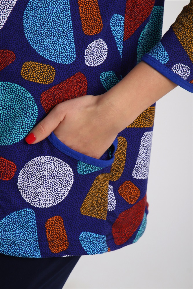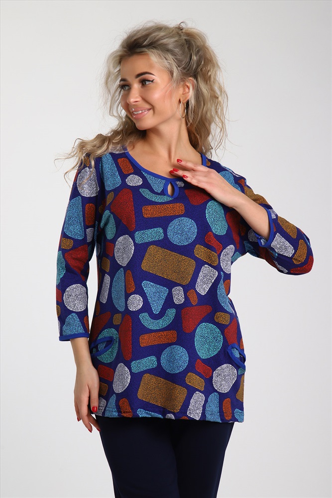 Состав: 100% хлопок Модель: Костюм женский 51094 Тип товара: костюм с бриджами Материал: кулирка | кулирка Бренд: Натали Суслова Карман: боковые Назначение: для дачи | для дома Особенности: на резинке Отделка: с карманами Посадка: высокая посадка Рисунок: геометрия Рукав: рукав 3/4 Сезонность: лето | осень | весна | зима Силуэт: прямой Стиль: домашний Воротник: без воротника Застежка: без застежки Комплект женский из трикотажной кулирки. Кофта с красивым орнаментом-мозаика, рукав 3/4, декоративные элементы капельки на горловине, есть два боковых кармана. Бриджи синие, тоже с карманами. Таблица размеров и весатуника