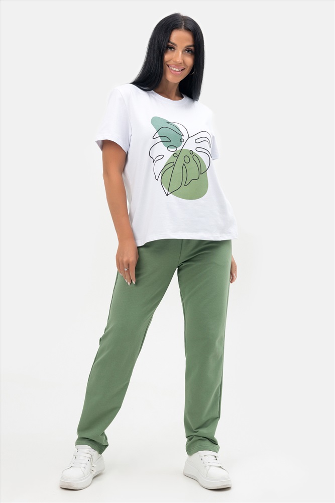 Этот легкий летний трикотажный костюм от бренда Jexy воплощение комфорта и стиля для домашних и повседневных занятий. Брючный костюм женский, создан с учетом потребностей женщин всех размеров, включая категорию больших размеров, он так же идеально подходит для невысоких женщин и беременных, благодаря свободному крою. Костюм женский летний нарядный выполнен из мягкого и приятного на ощупь хлопка, что делает его идеальным выбором для жаркой погоды. Материал позволяет коже дышать, создавая ощущение прохлады даже в самый знойный день лета. Вы можете наслаждаться комфортом этого комплекта дома или выйти в нём на прогулку по морскому побережью. Легкость ткани придаёт дополнительное удобство во время долгого ношения. Брюки с резинкой на талии обеспечивают идеальную посадку и свободу движений. Комплект большого размера включает в себя штаны и футболку с коротким рукавом, которая не стесняет движений рук. Эта модель трикотажного костюма станет вашей любимой домашней одеждой. Комплект двойка включает в себя футболку с ярким принтом и прямые брюки, создавая стильный и гармоничный образ. Свободный крой повседневного костюма заслуживает отдельного упоминания. Костюм из легкой хлопковой ткани подчеркивает женственные линии тела, не причиняя дискомфорта и не ограничивая движения. Одежда оверсайз давно получила высокую оценку за способность скрывать недостатки фигуры и подчеркивать её достоинства. Короткий рукав делает этот брючный костюм идеальным вариантом на лето: он создает ощущение лёгкости и воздушности даже в самые жаркие дни. Позвольте себе наслаждаться каждым моментом вашей жизни в этом великолепном трикотажном костюме, который подчеркнет вашу индивидуальность и подарит незабываемые ощущения.