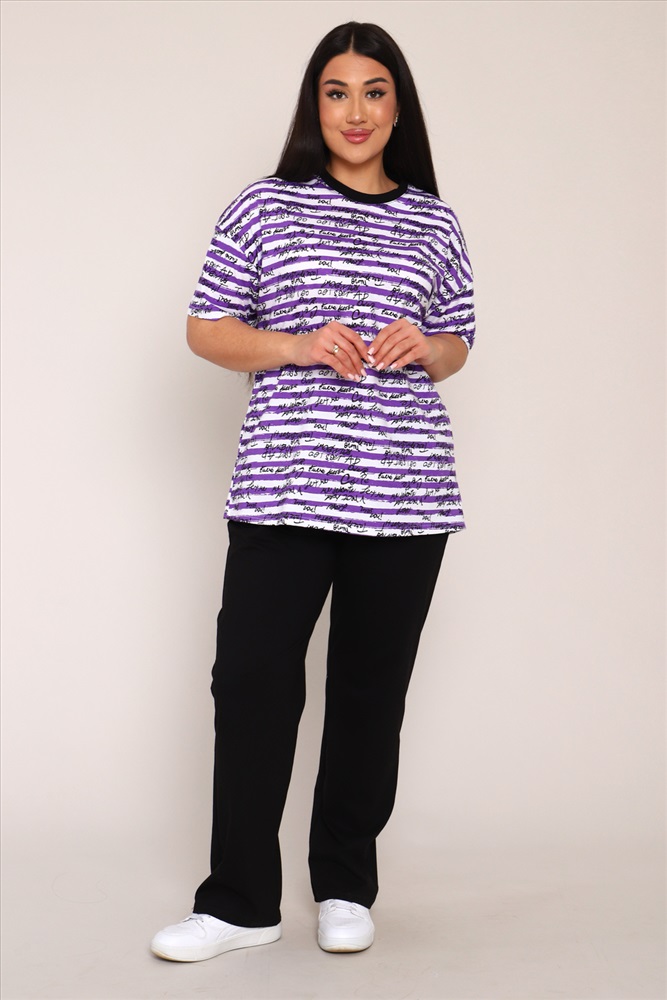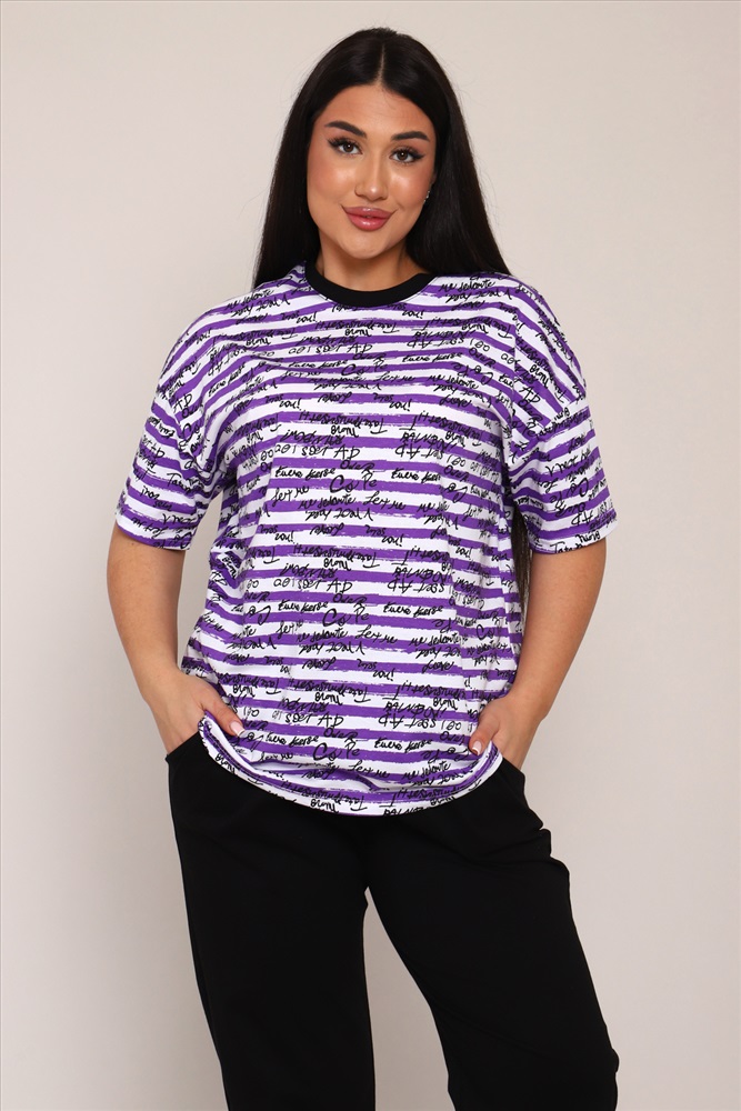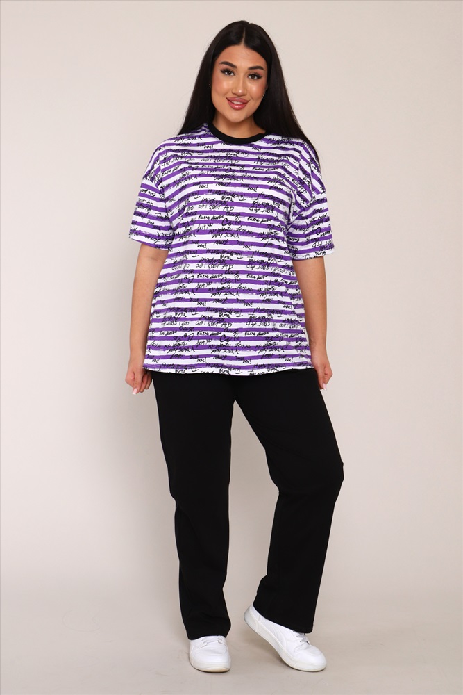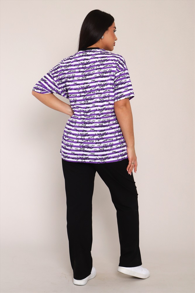 Состав: 100% хлопок Модель: Костюм женский КБЖ0049Д Тип товара: костюм с брюками Материал: кулирка | кулирка Бренд: ZF FASHION Карман: боковые Назначение: для дома Особенности: на резинке Отделка: с карманами Посадка: средняя посадка Рисунок: полоска Рукав: короткий рукав Сезонность: лето | осень | весна | зима Силуэт: свободный Стиль: домашний Воротник: без воротника Застежка: без застежки Этот легкий летний трикотажный костюм идеально подходит для домашних повседневных занятий. Брючный комплект сочетает комфорт и стиль, удовлетворяя потребности женщин разных размеров, включая категорию больших. Он особенно удобен для невысоких женщин, беременных и для полных, благодаря свободному крою и оверсайз форме. Костюм выполнен из приятного на ощупь хлопка, что делает его отличным выбором для жаркой погоды. Материал позволяет коже дышать, создавая ощущение прохлады даже в самый знойный день лета. Вы можете комфортно носить этот комплект дома или выйти в нём на прогулку на море. Легкость ткани придаёт дополнительное удобство во время долгого ношения. Брюки имеют эластичную талию, что улучшает посадку и обеспечивает свободу движений. что добавляет образу свежесть и не стесняет движений рук. Благодаря такому дизайну модель прекрасно сочетается с любой домашней одеждой. Комплект двойка включает в себя футболку с принтом и прямые Для многих женщин выбор одежды играет важную роль не только для выхода, но и дома. Трикотажная основа костюма нежно соприкасается с кожей, позволяя чувствовать себя уютно каждый день. Отдельного упоминания заслуживает свободный крой костюма. Этот элемент дизайна подчеркивает женственные линии тела, не причиняя дискомфорта и не ограничивая движения. Таблица размеров и весафутболка