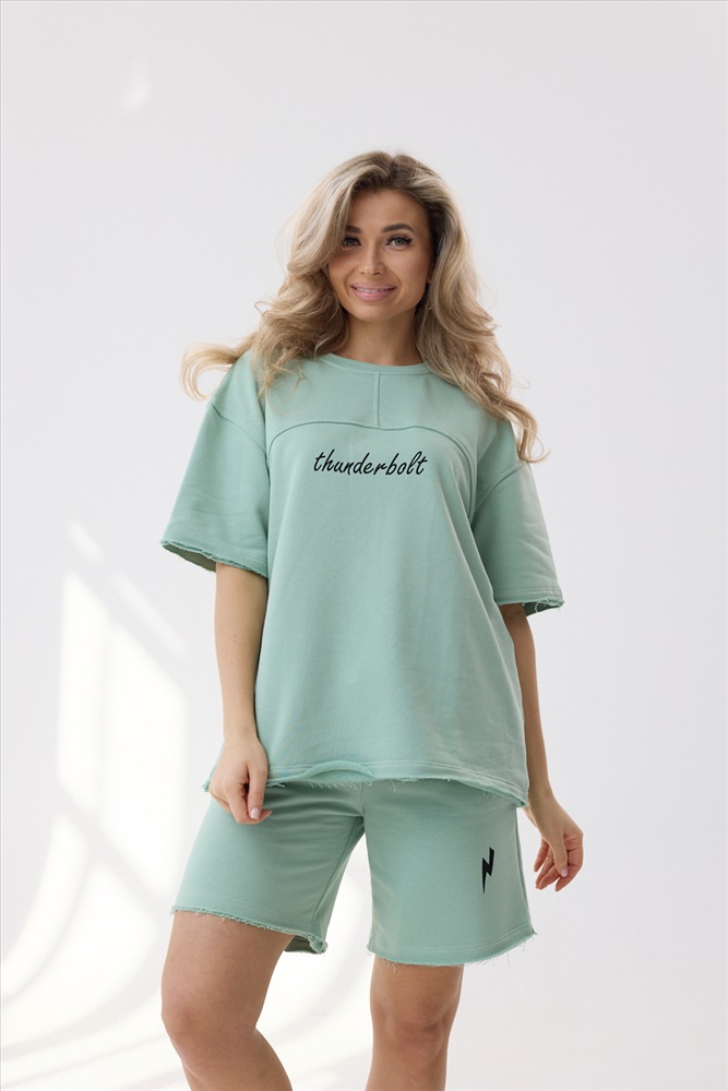 Женский домашний костюм-двойка фасона оверсайз - стильный и очень уютный вариант, который подойдет всем без исключения. Изюминкой базового набора является необработанный край - трендовая деталь, которая делает вещь молодежной и прикольной. Женский костюм с шортами на резинке и футболкой свободного кроя в стиле оверсайз, несомненно тренд этого сезона, благодаря своей практичности, универсальности и комфорту. Домашний женский костюм двойка состоит из хлопка и полиэстера, чтобы обеспечить комфорт и хорошую вентиляцию. Свитшот сшит из мягкого и приятного к телу материала, что делает его идеальным для прохладных летних вечеров или утренних пробежек.