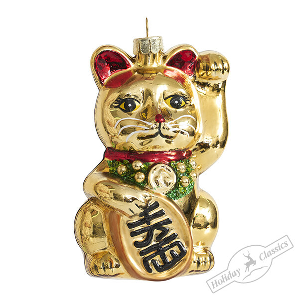 Кот "Манеки-неко" золотой (стекло) 5,5х5,5х10 см