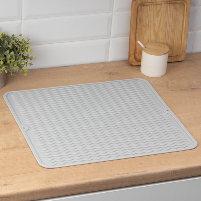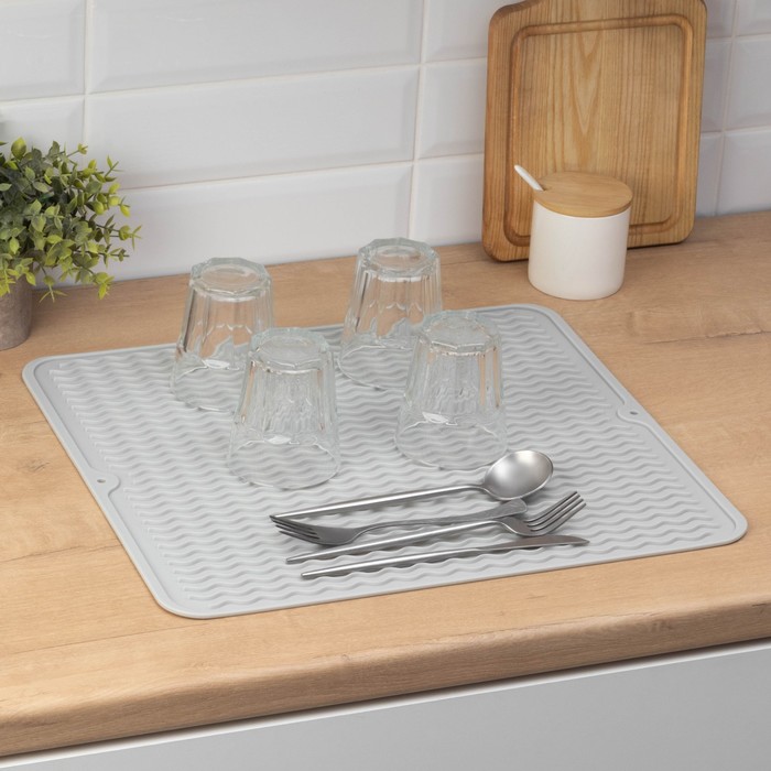 Габариты: 45 x 40,5 x 0,4 Страна: Китай В боксе: 100 шт Состав: Силикон Материалы: силикон Фасовка: по 1 шт Индивидуальная упаковка: Пакет Габариты товара: 45 см × 40,5 см × 0,4 см Сертификат: СТР Набор: Нет Цвет: Серый Размер, см: 45 х 41 Длина, см: 45 Ширина, см: 40,5 Высота, см: 0,4 Количество ярусов: 1 Материал: Силикон Тип сушилки: Коврик для посуды Установка: Настольная Силиконовый коврик для сушки посуды и столовых приборов - идеальный вариант для вашей кухни! Благодаря водонепроницаемому материалу вода будет скапливаться исключительно на поверхности сушилки. Комплектация