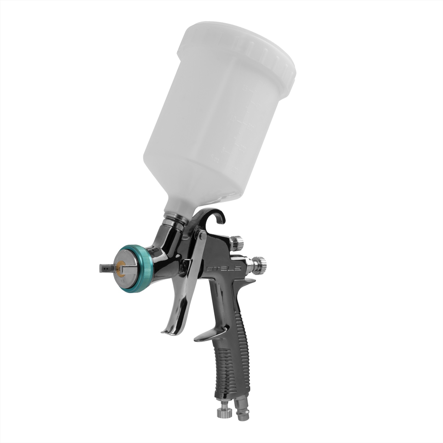 Профессиональный пневматический краскораспылитель гравитационного типа Stels AG 950 LVLP 57367 с соплом диаметром 1,5 мм подходит для проведения окрасочных работ, покрытия керамики глазурью, грунтовки стен, побелки потолков, лакирования дерева. Технология «Низкий объем, низкое давление» (Low Volume Low Pressure) позволяет уменьшить расход окрасочного материала до 140-190 мл/мин и добиться его 80-процентного переноса на обрабатываемую поверхность. Поэтому краскопульт отлично подойдет для применения как в быту, так и на производствах. Преимущества