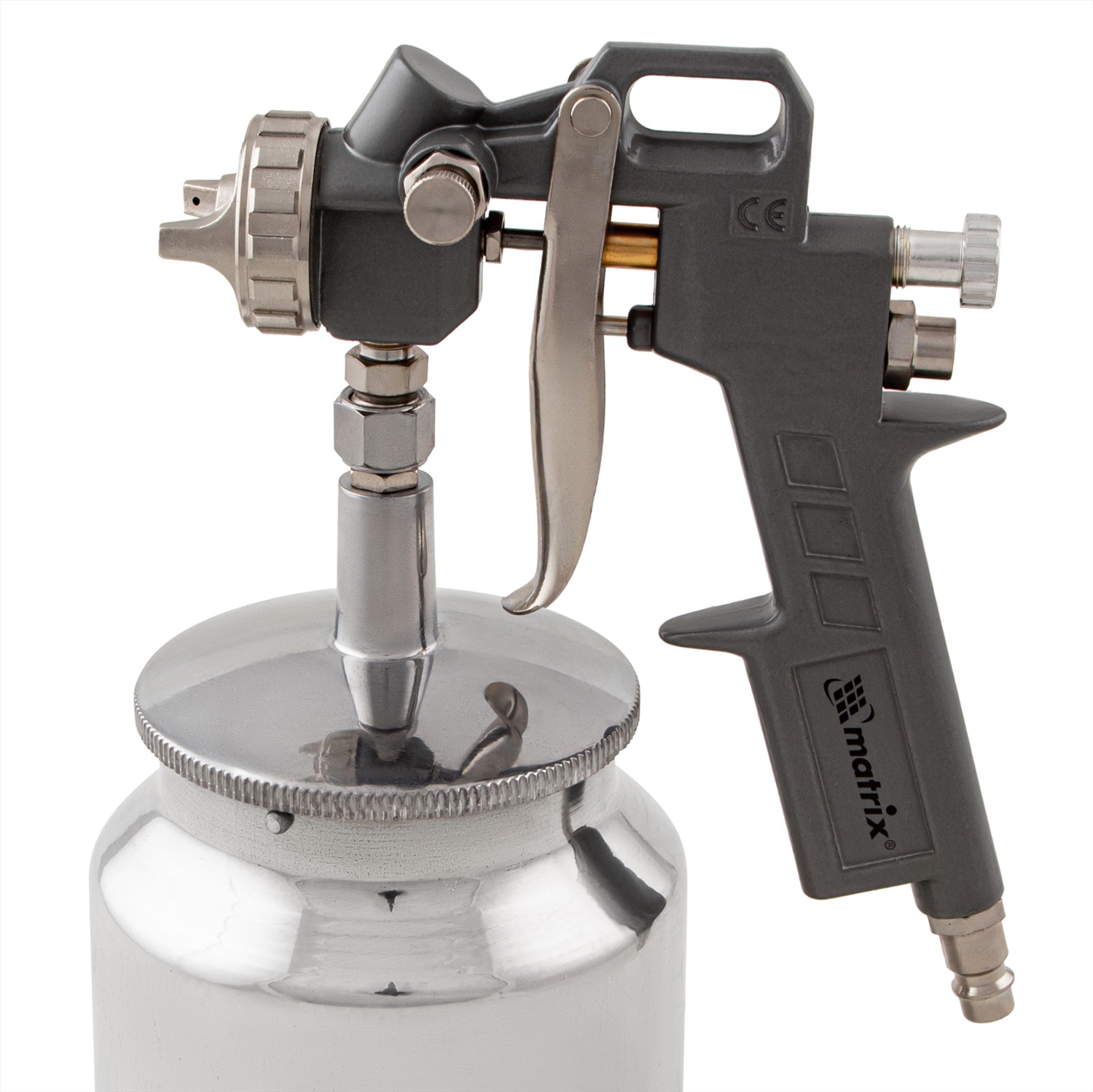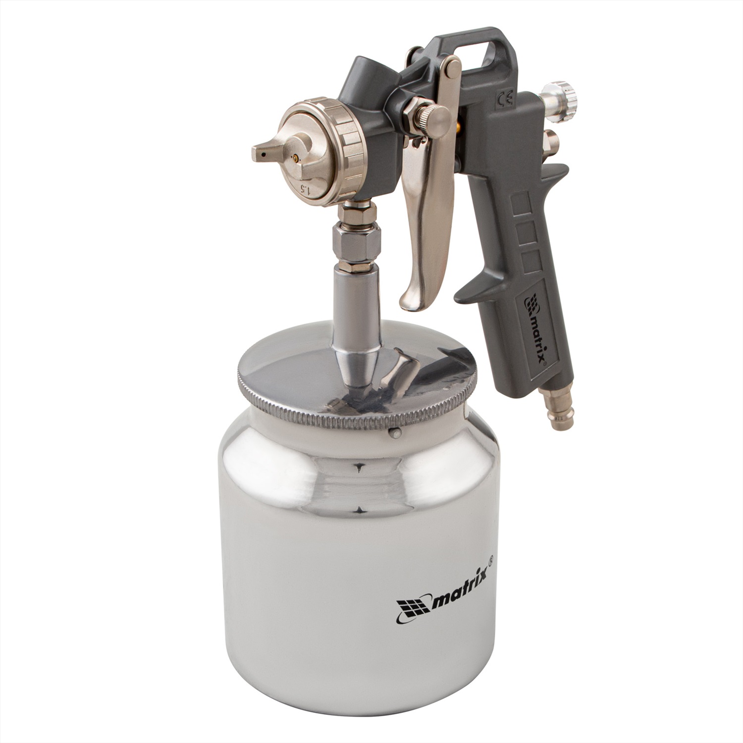 Пневматический краскораспылитель Matrix 57317 с нижним бачком объемом 0.75 л и соплами диаметром 1,2, 1,5 и 1,8 мм используется для окрашивания металлических, деревянных, керамических и пластмассовых поверхностей. Благодаря сменным соплам краскораспылитель может работать с различными по густоте составами: лаком, шпаклевкой, краской. Он пригодится на стройке, в автомастерской и на мебельном производстве. Преимущества