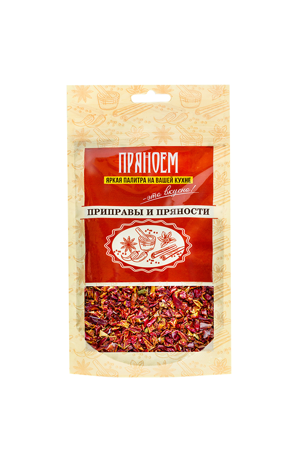 Красная паприка, хлопья 6х6 мм, пряность - 100г