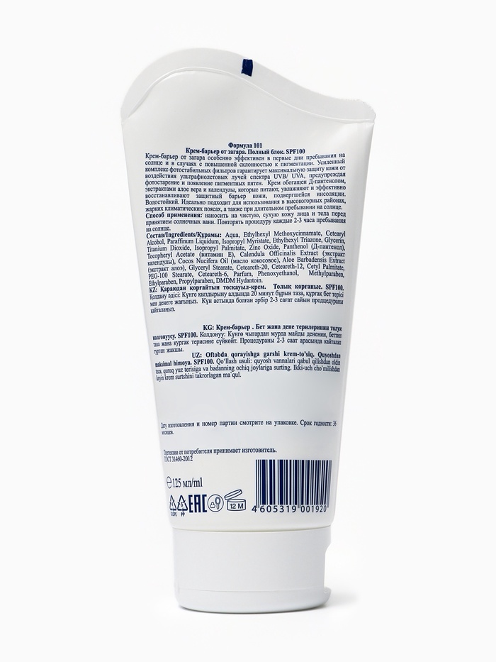Крем-барьер от загара водостойкий Floresan полный блок, 125 мл