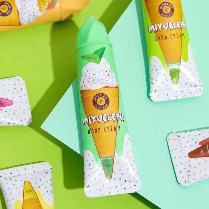 Лёгкий увлажняющий крем с ароматом наивкуснейшего мороженого. Яркий и оригинальный тюбик крема в виде мороженого вызывает восторг у любого, кому попадает в рукию, по мимо этого, он имеет специальный необычный наконечник, который позволяет контролировать количество крема при нанесении на руки. Крем замечательно питает, увлажняет, смягчает, оживляет и тонизирует кожу рук, делая ее еще более нежной, гладкой и сияющей. Крем быстро впитывается, обладает разглаживающими свойствами. Каждый крем имеет свой неповторимый аромат. После применения кожа становится невероятно мягкой, бархатистой, при этом без липкого или жирного эффекта. Подходит для ежедневного ухода за руками.