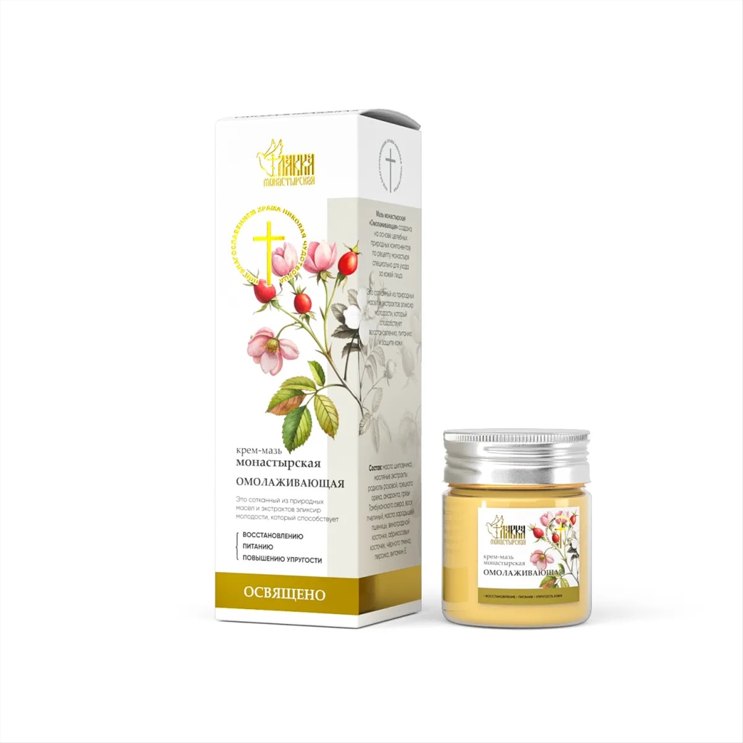 Мазь монастырская «Омолаживающая» создана на основе целебных природных компонентов по рецепту монастыря, специально для ухода за кожей лица. Это сотканный из природных масел и экстрактов эликсир молодости, который способствует восстановлению, питанию и защите кожи.