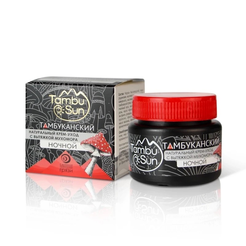 Ночной крем «Tambusun» - бережное средство для заботы о Вашей коже. Ценные компоненты крема, богатые полезными веществами, глубоко насыщают и питают кожу, запуская процесс омоложения, пока Вы спите. Крем поможет устранить возрастную пигментацию, темные круги и мешки, отёки и воспаления. Мухомор кавказский усиливает действие составляющих крема, нормализует баланс влаги в клетках кожи и не допускает её потери, устраняет сухость, омолаживает, регенерирует, устраняет мимические морщинки, подтягивая и разглаживая кожу.