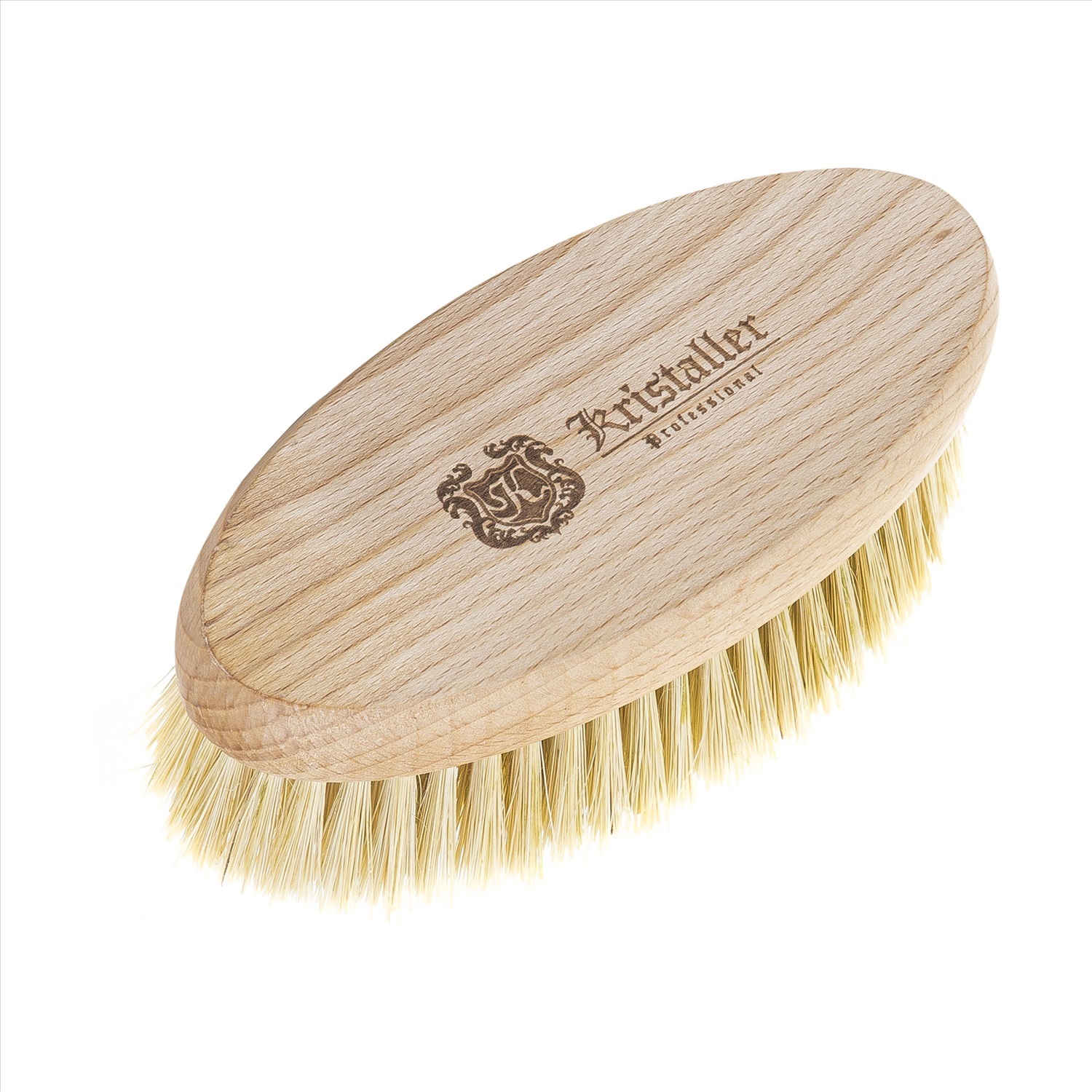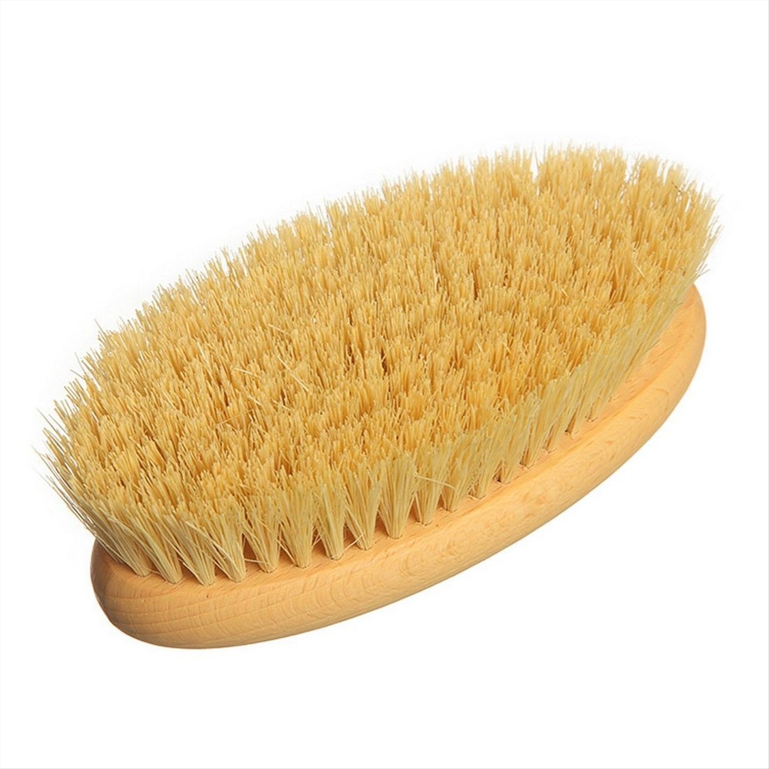 Овальная щётка для сухого массажа. Щётка изготовлена из древесины бука и натурального волокна тампико. Колодка обработана мастикой на основе пчелиного воска и льняного масла. Плотная набивка, широкая массажная поверхность. Овальная щётка удобно лежит в ладони и отлично справляется с более точечным массажем круговыми движениями (бёдра, живот). В процессе массажа, щетинки удаляют верхний огрубевший слой клеток эпидермиса, стимулируют кровоток и лимфоотток, раскрывают и очищают поры. Кожа наилучшим образом подготавливается к дальнейшему нанесению косметических средств (масла, кремы, гели).