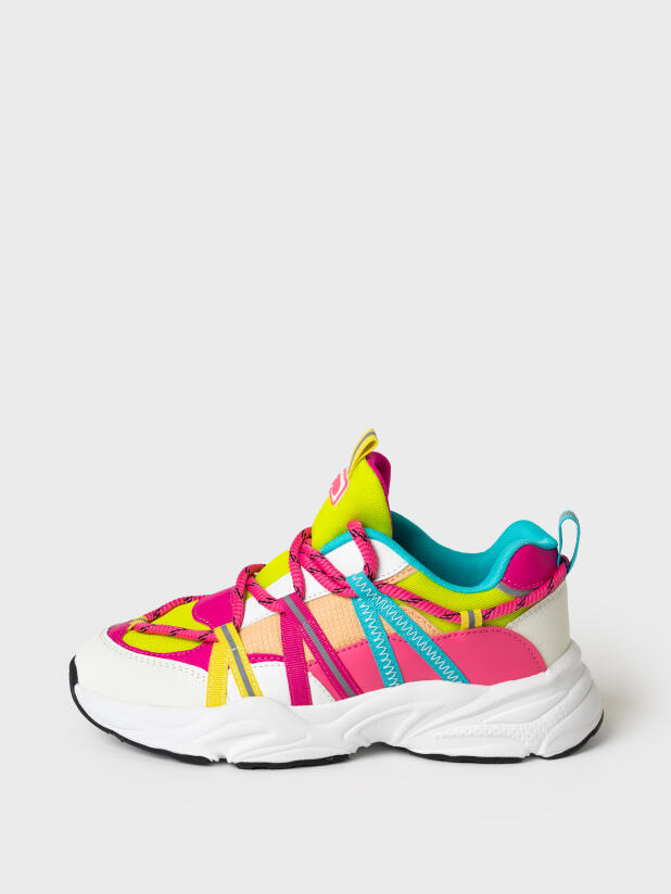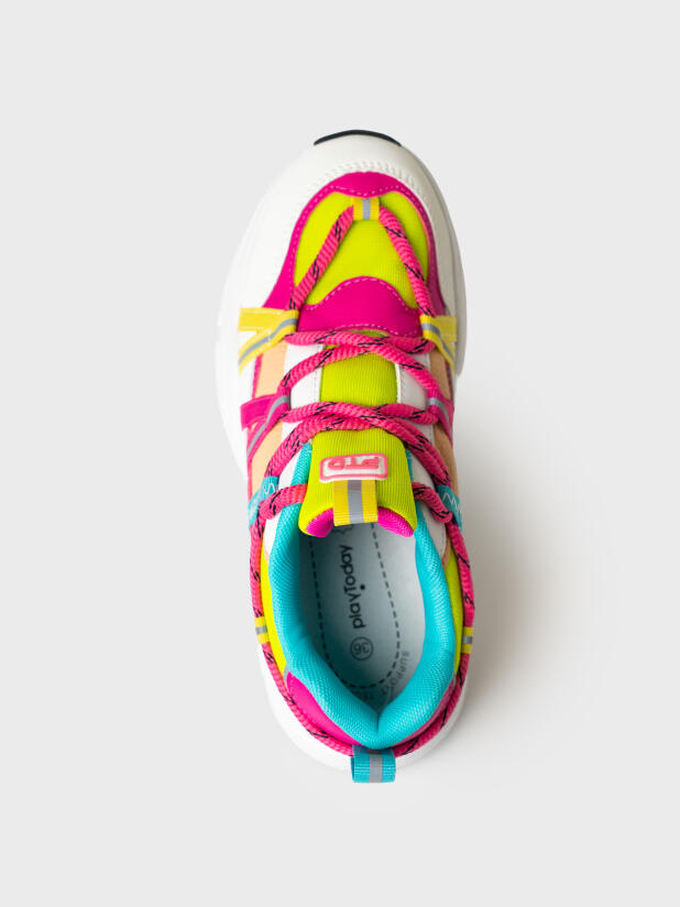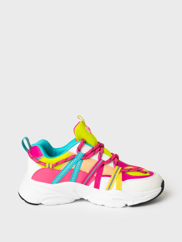 Трендовые кроссовки на шнурках для девочки-подростка. Кроссовки выполнены в стиле колор-блок. Кроссовки Сделаны из дышащего текстиля и искусственной кожи с повышенной износостойкостью. Носочная и пяточная часть выполнена из специального защитного материала. Профилированная съемная стелька из натуральной кожи с анатомической формой подсводника обеспечивает правильную нагрузку на стопу. В носочной части обуви стоит текстильная подкладка c высоким содержанием хлопка 80%, которая обладает высокой гигроскопичностью. В пяточной части обуви текстильная подкладка обладает хорошей износостойкостью. Кроссовки имеют светоотражающие элементы. Формоустойчивый задник поддерживает стопу в правильном положении. Эргономичная форма колодки обеспечивает правильное формирование стопы ребенка. Двухсоставная подошва из ЭВА и ТПР не скользит и устойчива к истиранию.