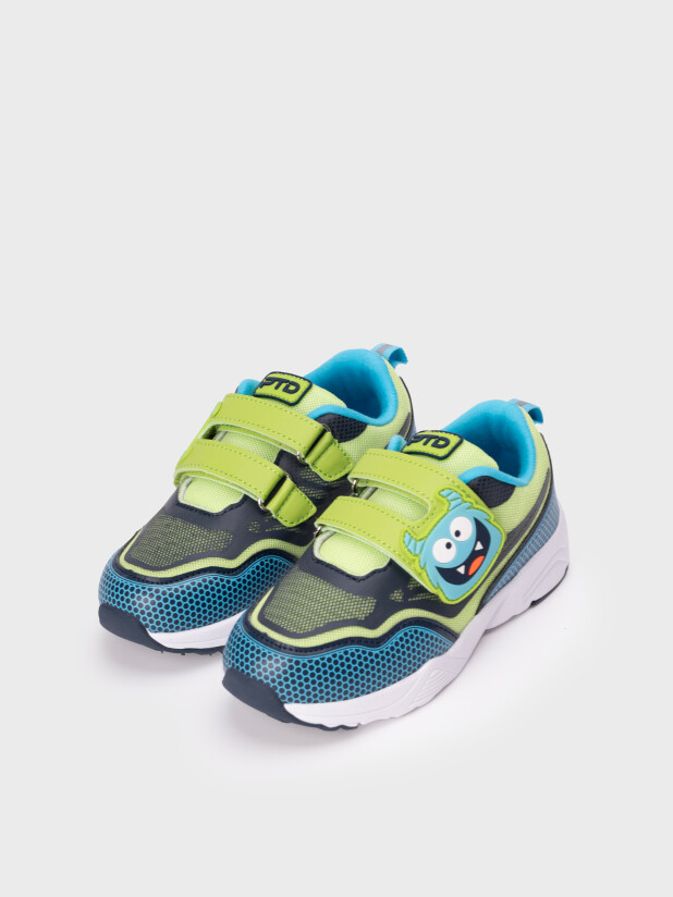 Кроссовки детские для мальчика. Кроссовки выполнены из дышащего текстиля и искусственной кожи, обладающей высокими эксплуатационными свойствами. Модель имеет светоотражающие элементы. Кроссовки имеют широкую сдвоенную липучку для удобства обувания ребенка. В обуви стоит текстильная подкладка и стелька с высоким содержанием хлопка 80%, которая обладает высокой гигроскопичностью. Профилированная съемная стелька имеет специальную форму с анатомическими элементами, которые обеспечивают правильное распределение нагрузки на стопу, а также выполняют массажную функцию стопы . Идеально подходит для длительных прогулок. Формоустойчивый задник поддерживает стопу в правильном положении. Эргономичная форма колодки обеспечивает правильное формирование стопы ребенка. Двухсоставная подошва из ЭВА и ТПР легкая, гибкая и имеет хорошие амортизационные свойства. Вставки из ТПР в носочной и пяточной частях предотвращают быстрый износ подошвы и делают ее нескользкой.