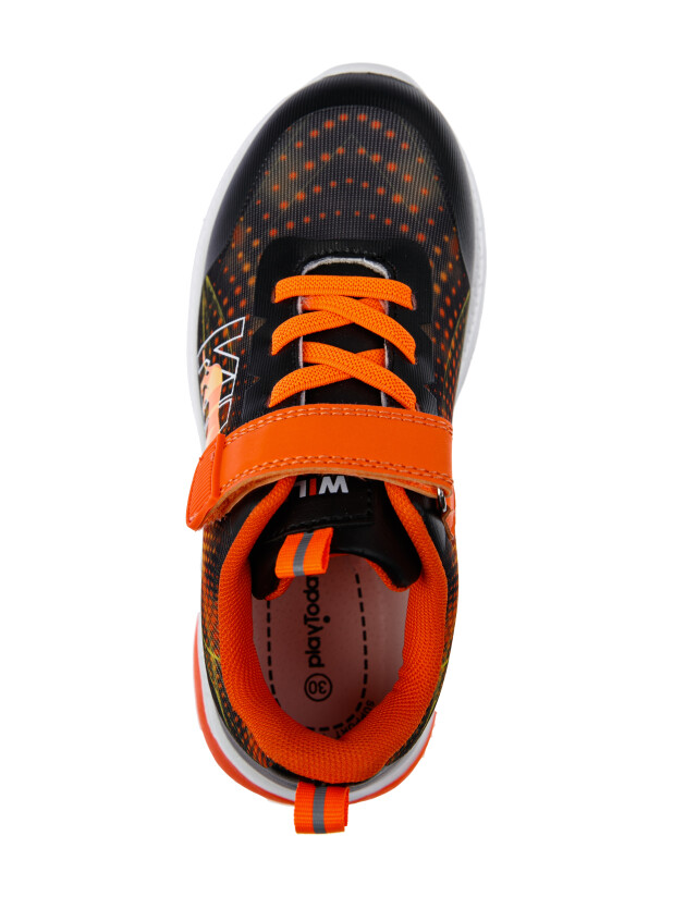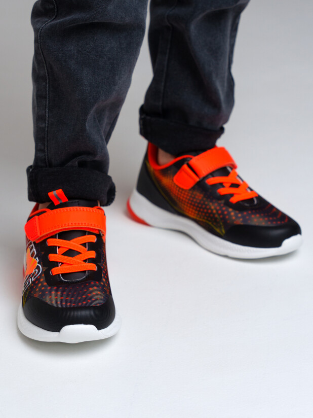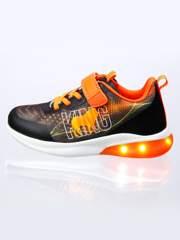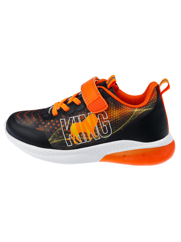 Кроссовки из дышащего текстиля. Усиленная защита носка и пятки специальными материалами. Текстильная подкладка c высоким содержанием хлопка, которая обладает высокой гигроскопичностью и износостойкостью. Кожаная профилированная стелька с анатомической формой обеспечивает правильную нагрузку на стопу. Легкая и гибкая подошва имеет светодиодные элементы. Эластичные шнурки и липучка создают удобство при обувании и надежно фиксируют ногу. Формоустойчивый задник поддерживает стопу в правильном положении. Эргономичная форма колодки обеспечивает правильное формирование стопы ребенка.