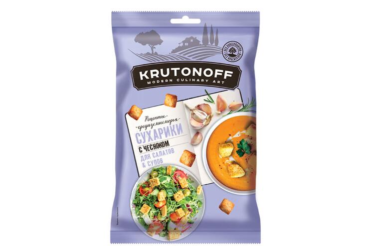 Производитель: Крутоноф; Производитель: ЗАО "КДВ Павловский Посад"; Страна производства: Россия; Условия хранения: Хранить при температуре не выше плюс 25 °С и относительной влажности воздуха не более 75 %.; Срок хранения: 6 мес.; Количество в коробке: 28 шт; Вес: 100 г; Белки: 10; Жиры: 12; Углеводы: 68; Калории: 420; Стандарт: СТО 14407159-008-2013; Упаковка: фасованный; Вес коробки: 3.193; Вид: сухарики; Вкус: чеснок; Состав продукта: мука пшеничная 1 сорт, мука пшеничная в/с, вода питьевая, масло растительное, натуральный ароматизатор (мальтодекстрин, соль, чеснок порошок, сахар, дрожжевые экстракты, натуральные вкусоароматические вещества, регуляторы кислотности- лимонная кислота, диацетат натрия, краситель куркумин), сахар, соль, дрожжи хлебопекарные. Возможно наличие следов ракообразных, рыбы, сои, молока, сельдерея, горчицы.; Сертификаты: ЕАЭС N RU Д-RU.РА11.В.95671/24 для ЗАО "КДВ Павловский Посад"