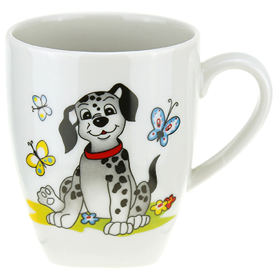 Кружка детская фарфоровая "Озорные щенки" 210мл, д7см, h8см, форма "Глория" (Россия)