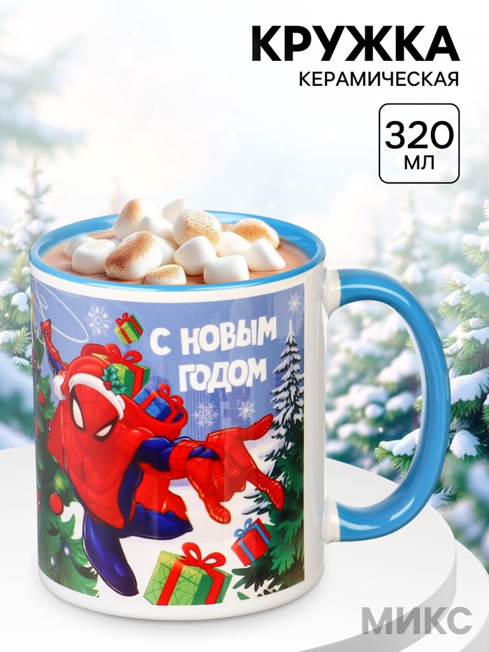 Керамическая кружка 320 мл с новогодним дизайном и принтом Человек-паук — уютный аксессуар в праздничной атмосфере. Из качественной керамики, удобно ложится в руку, подходит для чая, какао или кофе. Идеальна для дома, офиса или в подарок. Пусть каждый глоток приносит тепло, радость и предвкушение чуда — настоящий праздник начинается с любимого героя!