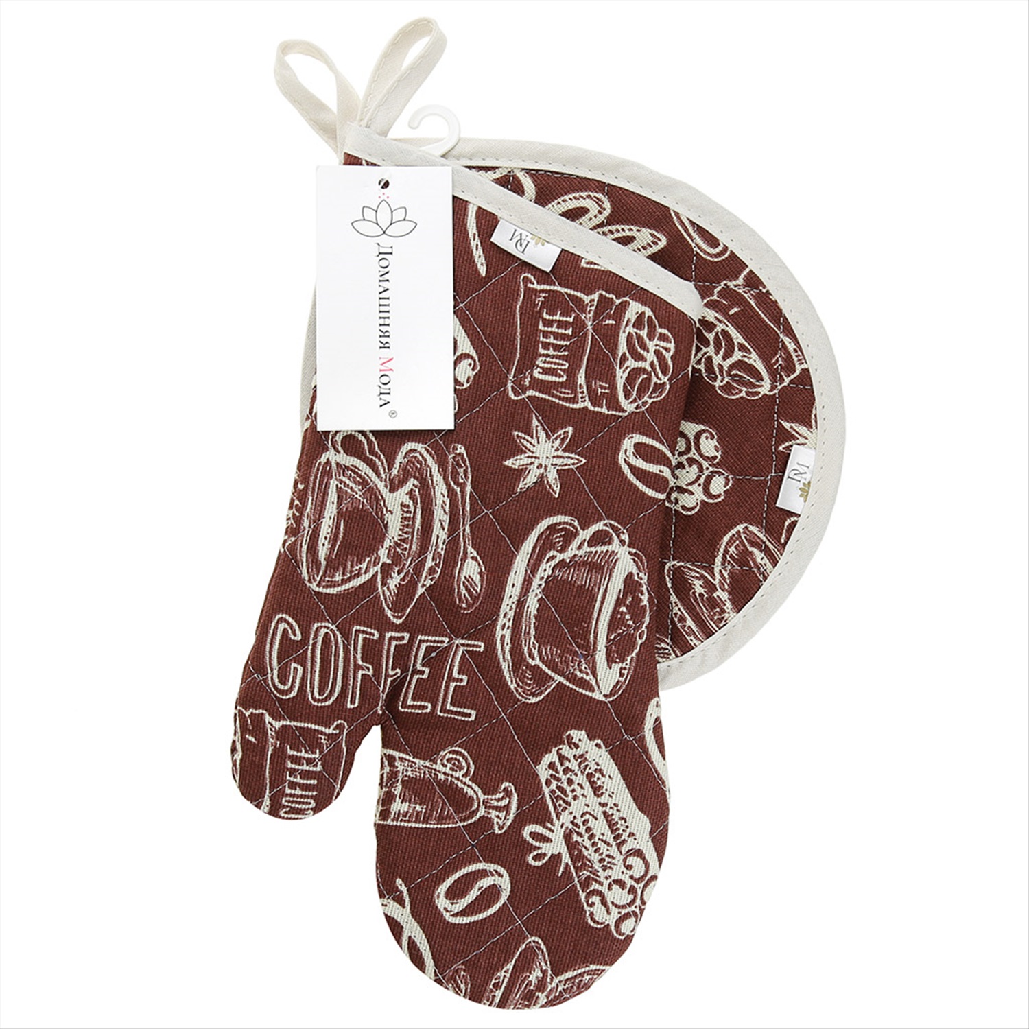 Кухонный комплект "Эспрессо, вид 1": прихватка-варежка 15х30см + прихватка 20х25см форма "Капелька", рогожка 171г/м2, хлопок 100%, наполнитель - ватин 280г/м2, на пластмассовом подвесе, "Домашняя мода" (Россия)