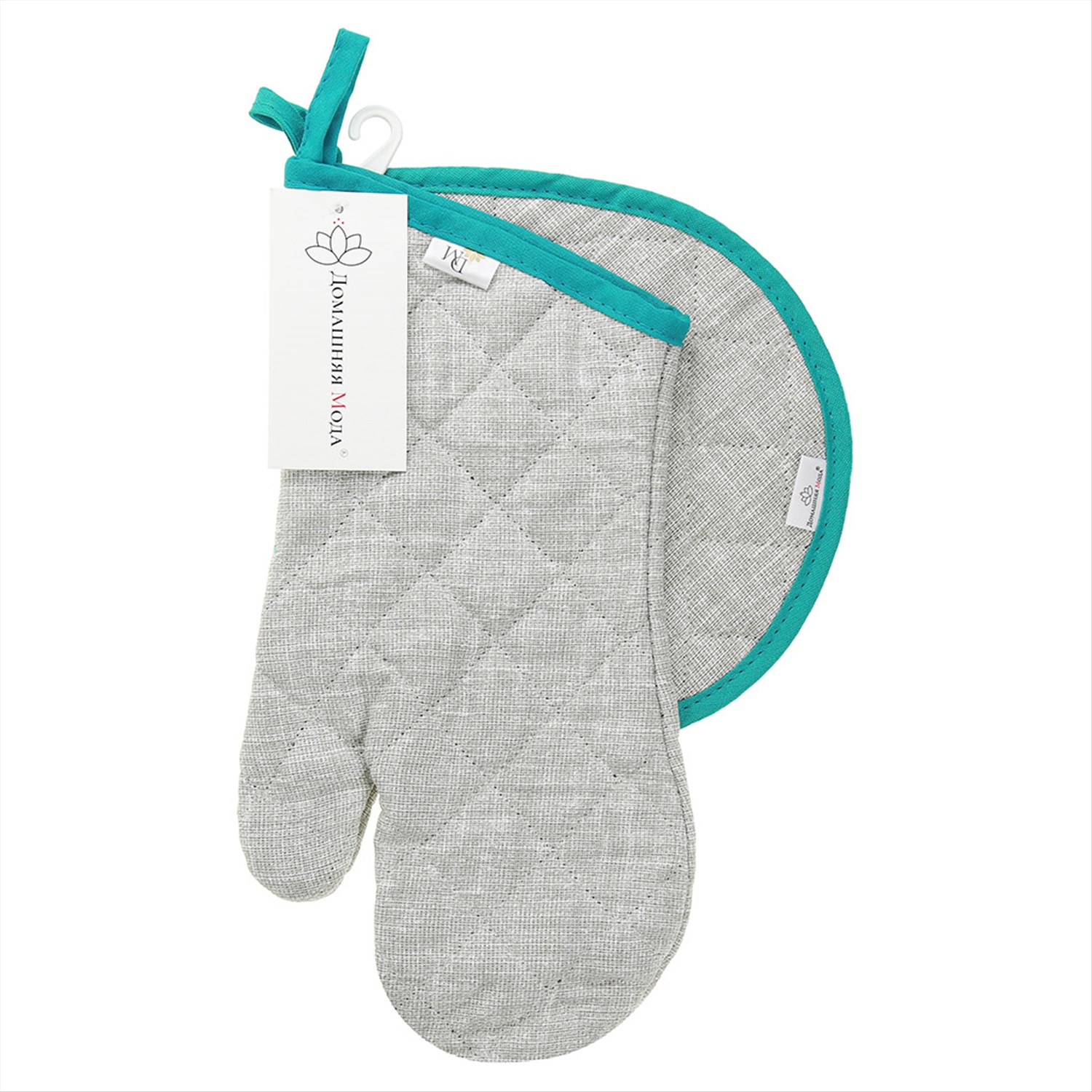 Кухонный комплект "Лен серый": прихватка-варежка 15х30см + прихватка 20х25см форма "Капелька", рогожка 171г/м2, хлопок 100%, наполнитель - ватин 280г/м2, на пластмассовом подвесе, "Домашняя мода" (Россия)