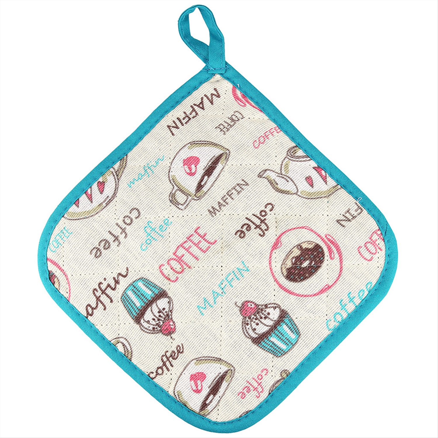 Кухонный комплект "Вкусняшки": прихватка-варежка 15х30см + прихватка 20х20см, рогожка 171г/м2, хлопок 100%, наполнитель - ватин 280г/м2, на пластмассовом подвесе, "Домашняя мода" (Россия)