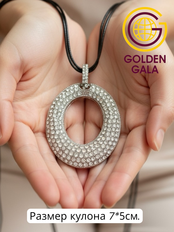 Кулон украшен потрясающими стразами, которые завораживают своим блеском.