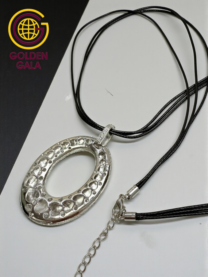 Созданная с любовью к искусству, эта длинная подвеска на кожаном шнурке сочетает в себе гармонию природных текстур и благородных металлов. Многослойный кожаный шнур придает изделию особую глубину и мягкость, а металлические элементы кулона, переливающиеся в лучах света, делают его по-настоящему универсальным – идеальным как для повседневных луков, так и для вечерних выходов.