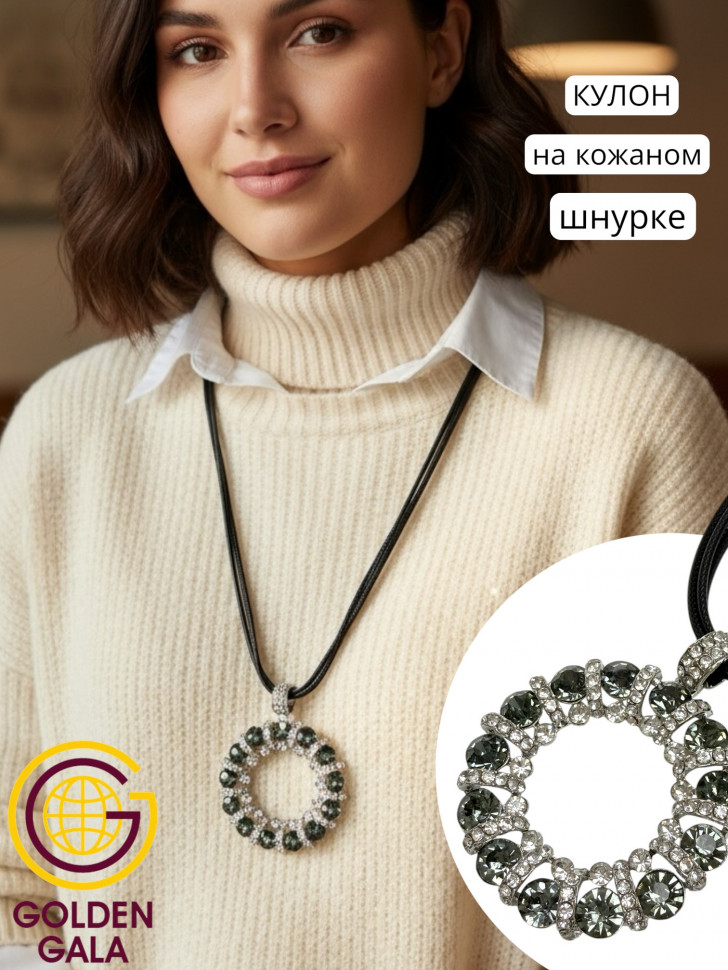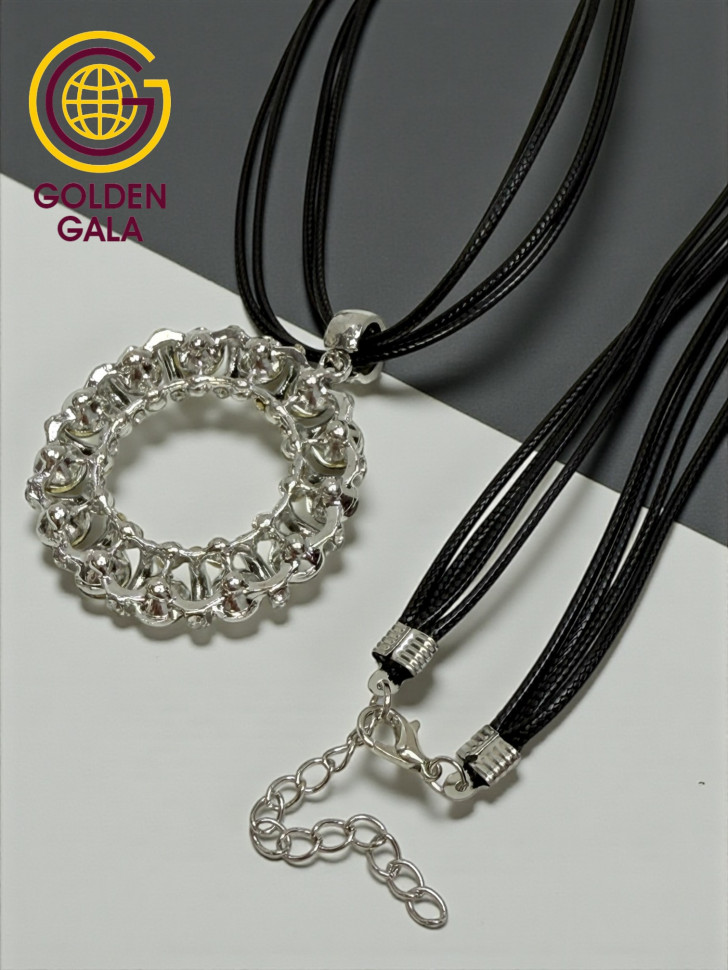 Созданная с любовью к искусству, эта длинная подвеска на кожаном шнурке сочетает в себе гармонию природных текстур и благородных металлов. Многослойный кожаный шнур придает изделию особую глубину и мягкость, а металлические элементы кулона, переливающиеся в лучах света, делают его по-настоящему универсальным – идеальным как для повседневных луков, так и для вечерних выходов.