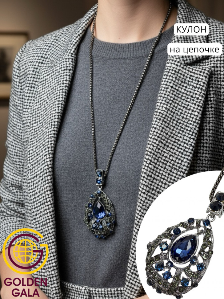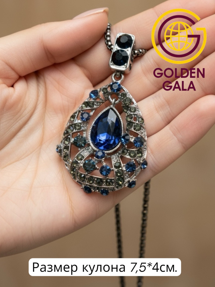 Кулон украшен потрясающими кристаллами и стразами, которые завораживают своим блеском.