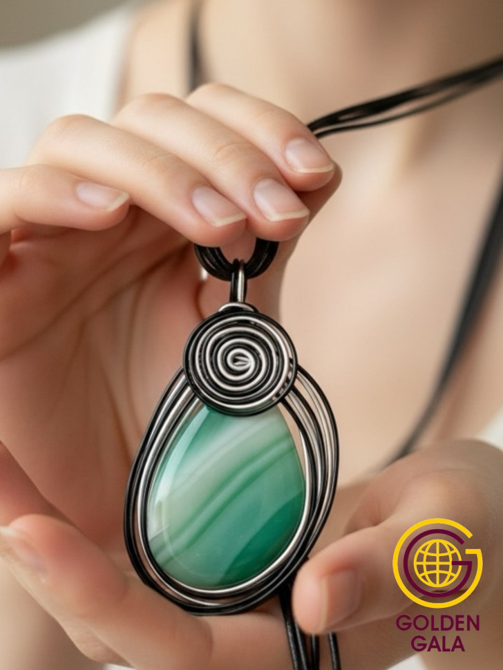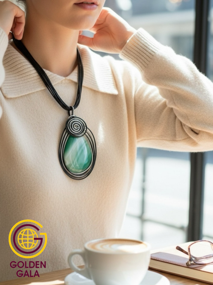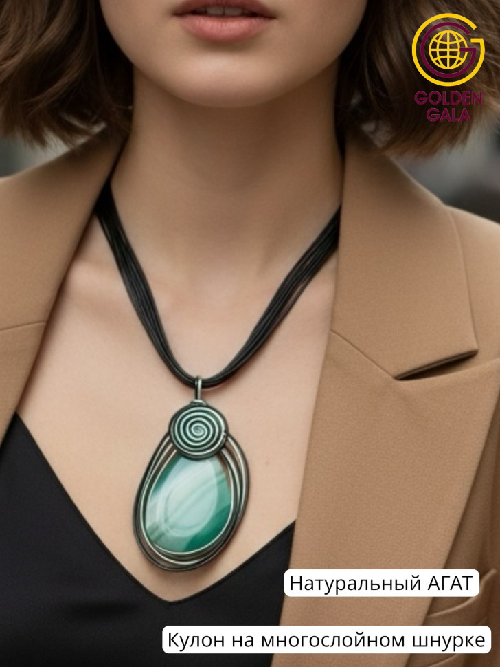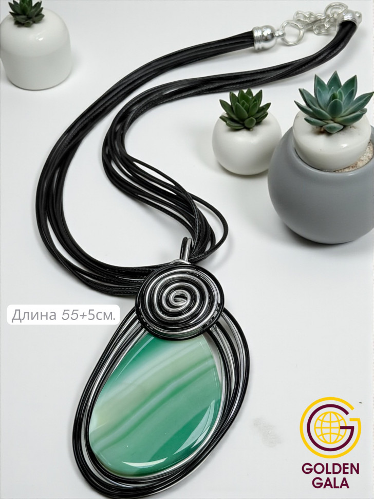 Подвеска с камнем -одно из самых актуальных украшений всех женщин! Крупная подвеска-кулон с натуральным камнем всегда пользуется большой популярностью у прекрасного пола. Она способна украсить любой образ как праздничный так и повседневный .Украшение с Агатом подойдет под любой гардероб, рубашку, блузку, платье, под пиджак. Этот большой кулон с натуральным камнем АГАТ может стать Вашим талисманом. Кулон ручной работы из Агата обрамлен красивой и качественной фурнитурой, что добавляет особый шарм. Подвеска на кожаном шнурке так же послужит вам хорошим оберегом или амулетом. Известно, что каждый камень обладает определённой энергией, ведь он формируется на протяжении многих лет. Агат-камень веры и долголетия, придаёт спокойствие ,ум, энергию. Приносит богатство и славу, защищает от сглаза, открывает обман. Крупный Агат защищает от опасностей и злых сил. Такое украшение может стать отличным подарком, имеющим глубокий смысл. Каждый камень обладает уникальным природным рисунком , двух одинаковых агатов в природе просто не существует! Обратите на это внимание ,кулоны могут не значительно отличаться рисунком. Рисунок на натуральном камне не предсказуем. Кулон идет в комплекте с многослойным стильным шнурком средней длины 50см.+ цепочка удлинитель 5см. Вес изделия 45-50 грамм. Размер кулона 8*5,5см. Подарочная коробка в стоимость не входит.