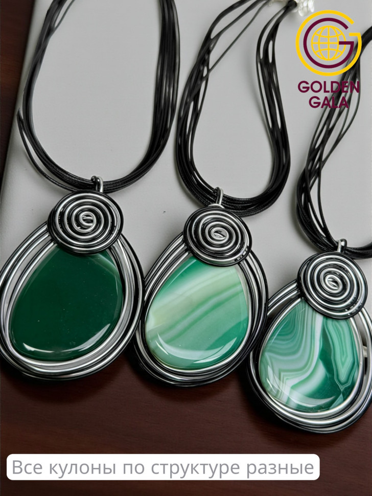 Кулон-подвеска из натурального Агата на многослойном шнурке АБ4/003 зеленый тигровый