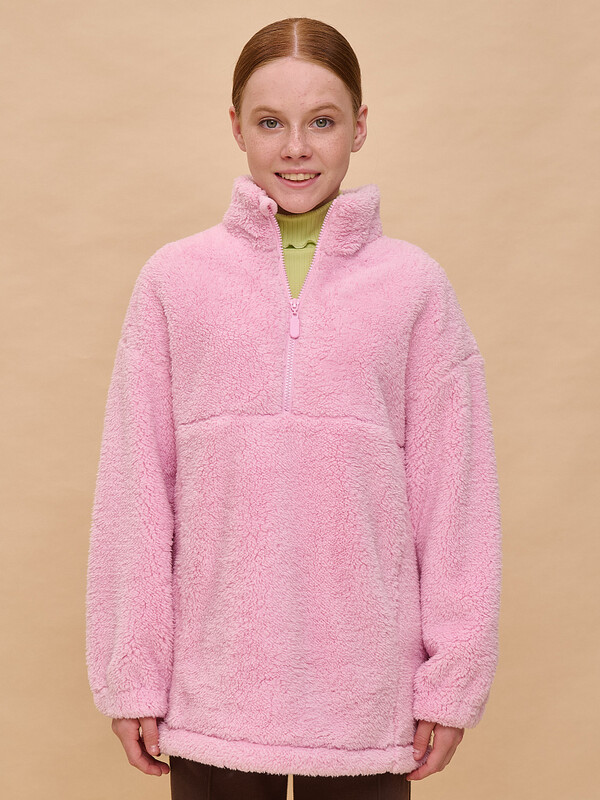 Толстовка детская для девочки. Трендовая трикотажная куртка увеличенного объёма из мягкого двустороннего материала бербер­флис с фактурой "барашек" заменит ветровку в прохладную погоду и поможет создать модный суперкомфортный расслабленный образ. Толстовка флисовая застёгивается на короткую молнию — актуальный тренд. Модель выполнена из 100% полиэстера — она лёгкая, мягкая, износостойкая, просто стирается и быстро сохнет. Высокий объёмный воротник-стойка с защитным ограничителем и широкие манжеты защитят от холода и ветра. По низу куртка детская дополнена эластичным шнуром со стоперами для регулировки ширины. Толстовка для девочки на молнии дополнена большим и удобным карманом-кенгуру. Модель выполнена в универсальных оттенках, которые хорошо сочетаются с одеждой любых цветов. Толстовка легко комбинируется с различными брюками, джинсами. Уютная и стильная куртка для девочки неприхотлива в уходе. Помните о правильном уходе за изделием: рекомендуется стирать при температуре не выше 30 °C, без предварительного замачивания, с изнанки. Это поможет сохранить качество и цвет куртки на длительное время.