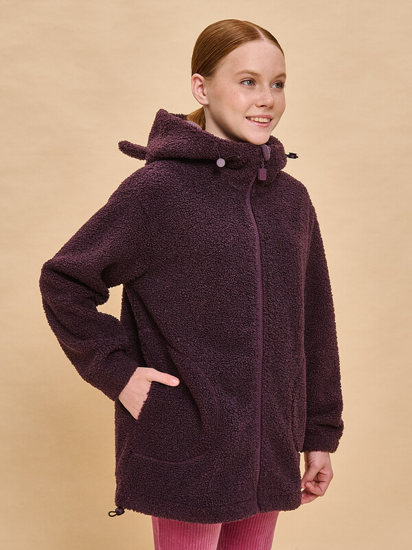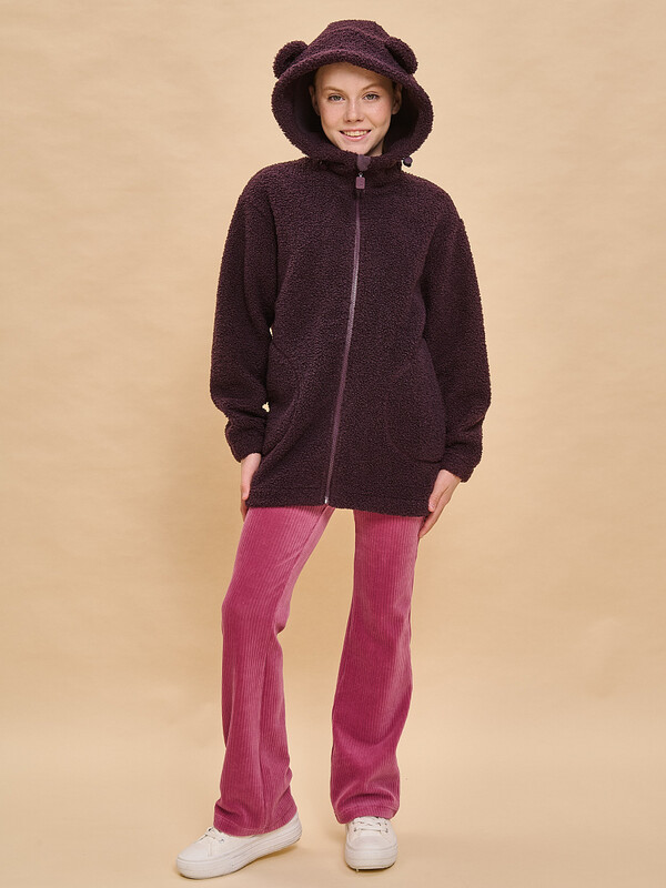 Трикотажная куртка для девочки. Супертренд сезона — милые ушки на одежде. Толстовка из мягкого, тактильно приятного берберфлиса (фактура «барашка») поможет создать «няшный», «кавайный» образ. Куртка умеренного оверсайз-силуэта подойдёт девочкам с любой фигурой. Капюшон двухшовный — это обеспечивает анатомически правильную форму и комфортную посадку по голове. На капюшоне трендовый декор — ушки медвежонка, а также удобные утяжки — можно регулировать объём. Толстовка флисовая застёгивается на удобную центральную молнию. По низу изделия также есть утяжка. Модель выполнена из 100% полиэстера — она лёгкая, мягкая, износостойкая, просто стирается и быстро сохнет. По переду куртка детская дополнена карманами, их округлые контуры обработаны декоративной строчкой — актуальный модный приём. Толстовка с ушками выполнена в универсальных оттенках, которые легко сочетаются с одеждой разных цветов. Уютная и стильная куртка для девочки неприхотлива в уходе. Помните о правильном уходе за изделием: рекомендуется стирать при температуре не выше 30 °C, без предварительного замачивания, с изнанки. Это поможет сохранить качество и цвет куртки на длительное время.