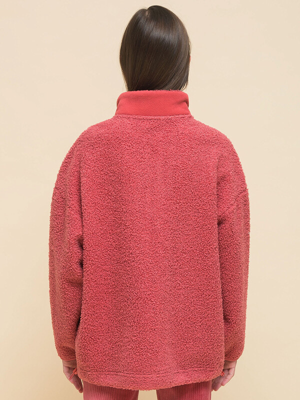 Состав: 100%полиэстер Толстовка детская для девочки выполнена из мягкого бербер-флиса (фактура «барашка»). Вставки по переду и рукавам, а также внешняя часть воротника — из футера с начесом. Сочетание материалов с разной фактурой — один из модных трендов. Куртка оверсайз-силуэта со спущенным плечом подарит ребёнку комфорт и свободу движения. Толстовка с воротником-стойкой защищает шею от холода и ветра, нет необходимости дополнительно надевать шарф. Внутренняя сторона воротника выполнена из мягкого и приятного на ощупь бербер-флиса. Спереди застёжка на центральную молнию. По низу изделия, по бокам утяжка на эластичный шнур — можно регулировать объём. Большие фигурные накладные карманы из бербер-флиса — удобно пользоваться. Зип-толстовка однотонная, без принта. За ней просто ухаживать. Одежда из бербер-флиса тёплая, лёгкая, мягкая, просто стирается и быстро сохнет, не выгорает и не скатывается, надолго сохраняет первоначальную форму. Вставки из 95% высококачественного хлопка. Он мягкий и дышащий. 5% эластана не даёт терять форму, растягиваться. Толстовка представлена в двух трендовых цветах: красный и бежевый (молочный оттенок). Она легко комбинируется с различными брюками. Размерный ряд: 1 (86); 2 (92); 3 (98); 4 (104); 5 (110); 6 (116); 7 (122); 8 (128); 9 (134); 10 (140); 11 (146). Плюшевая толстовка подходит девочкам дошкольного и младшего школьного возраста, а также девочкам-подросткам. Она идеальна для детского сада, прогулок, активного отдыха, спорта и дома. Толстовка на замке подходит для круглогодичной носки: прохладным летом, осенью, зимой, весной и демисезон. Это замечательный подарок дочери, внучке или сестре на Новый год и любой другой праздник. Комментарии к товару